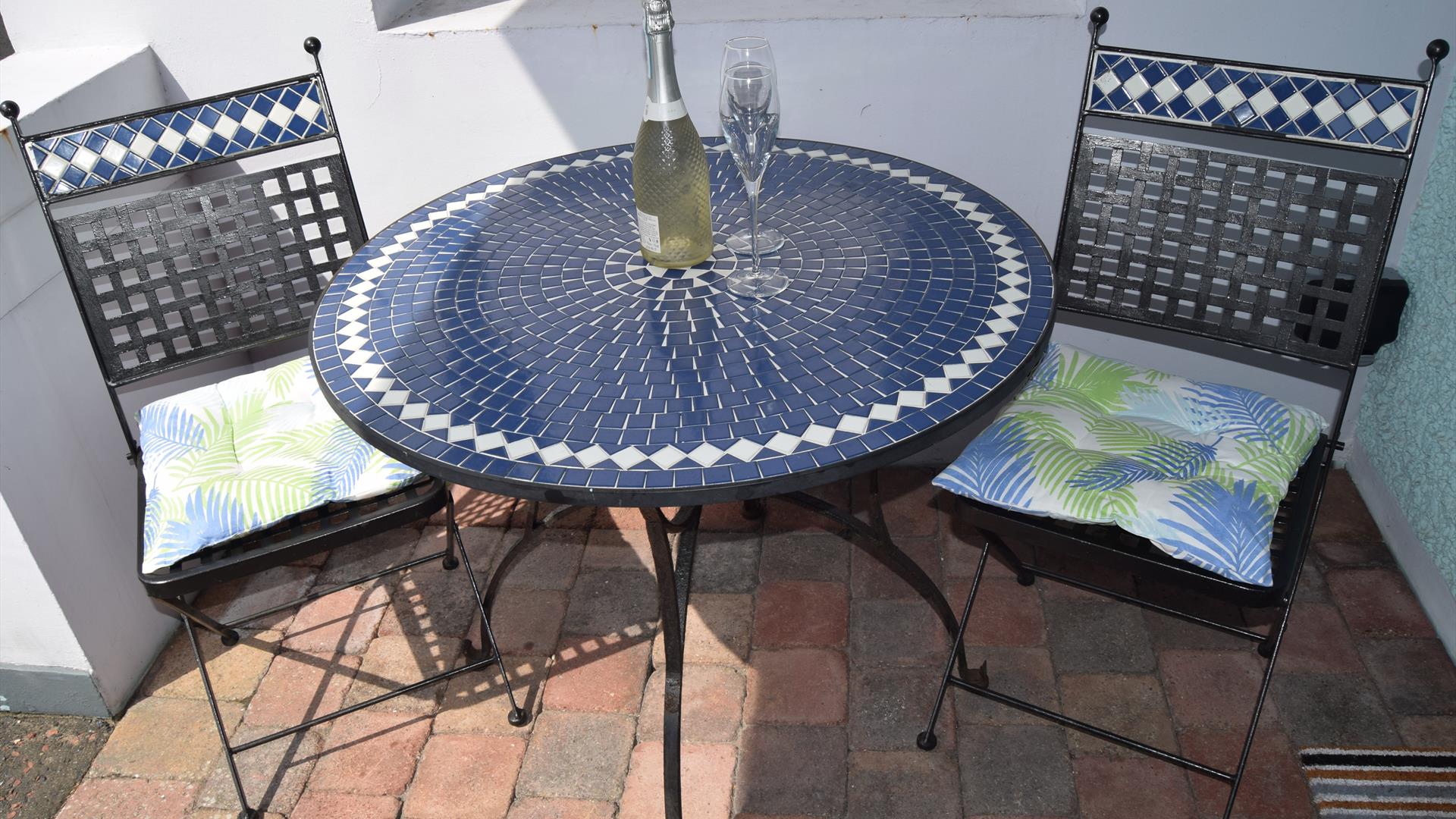 Patio area with table and chairs.