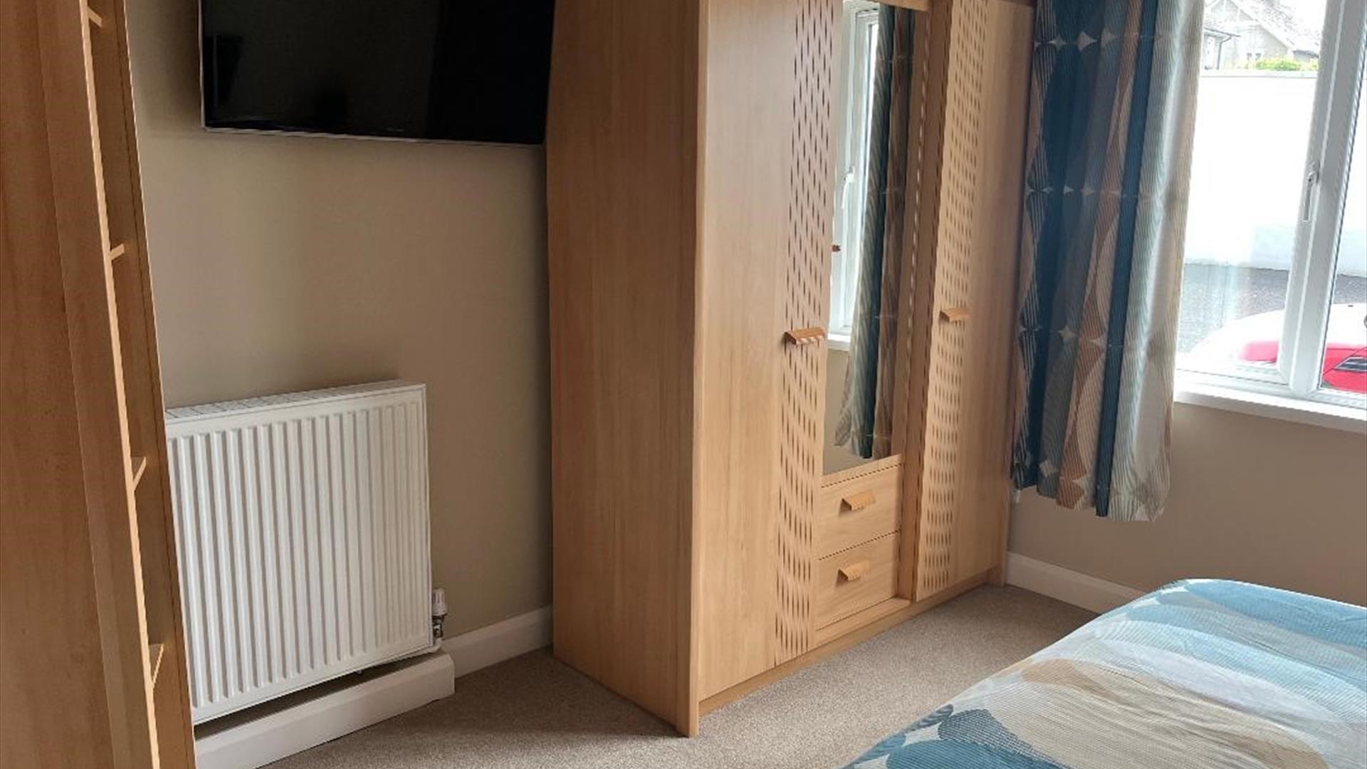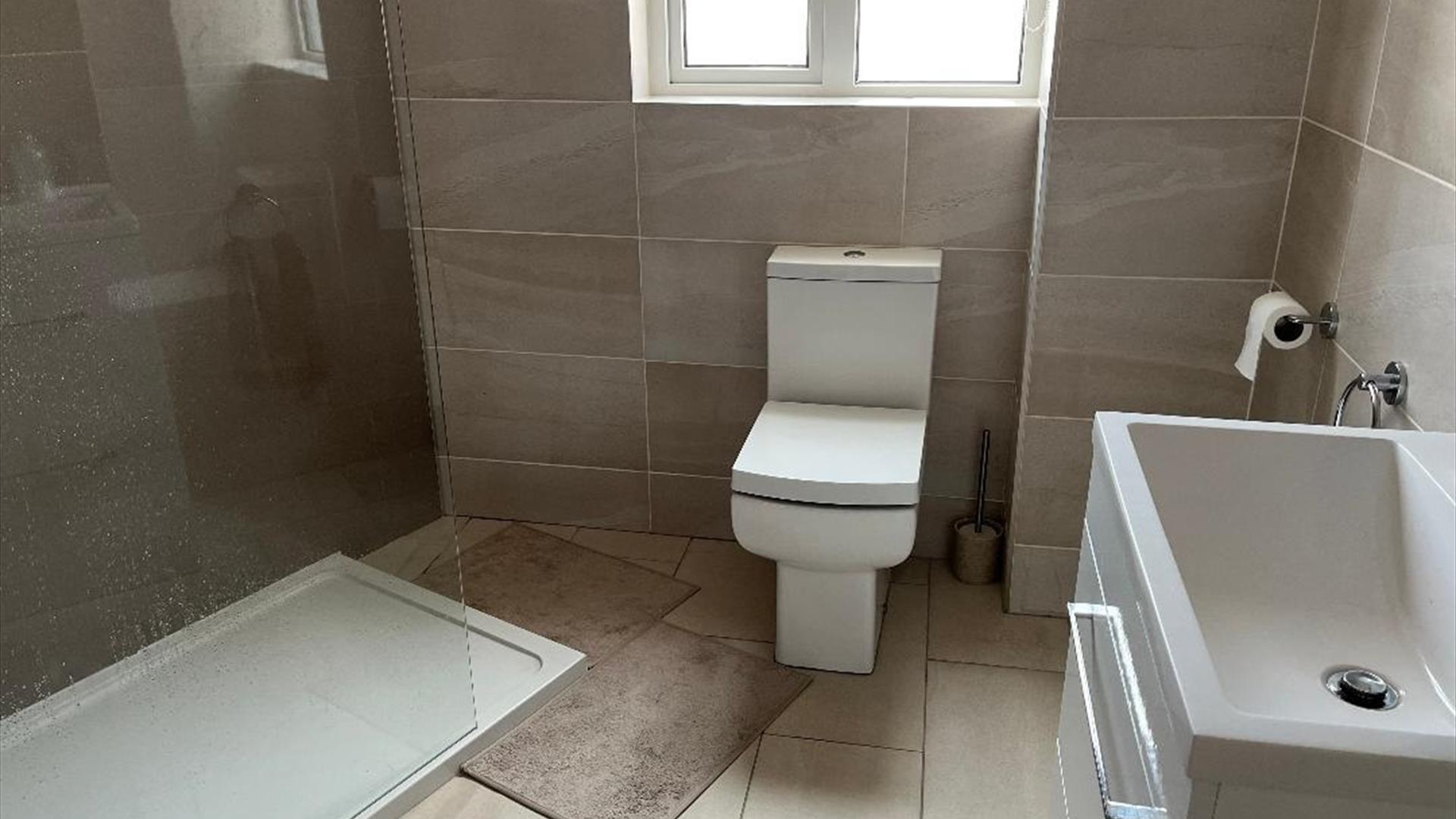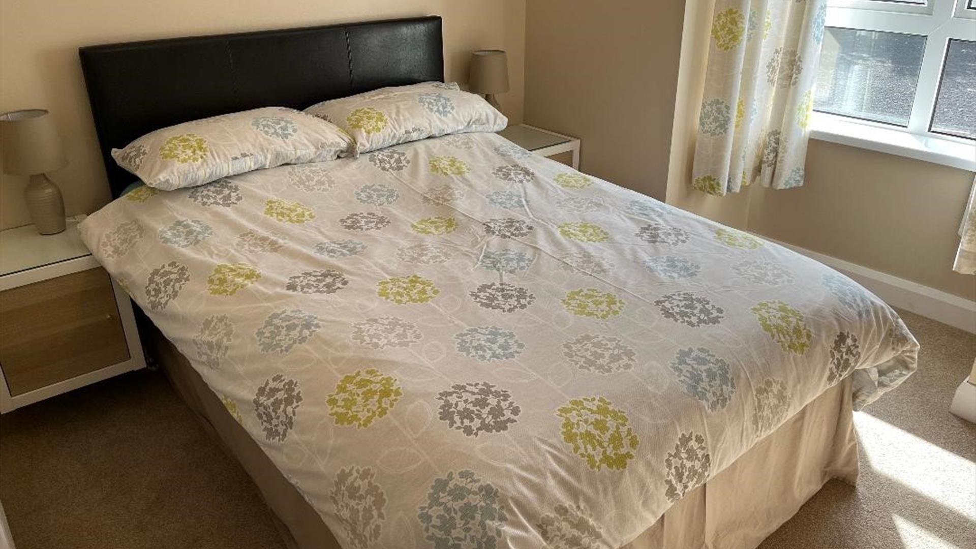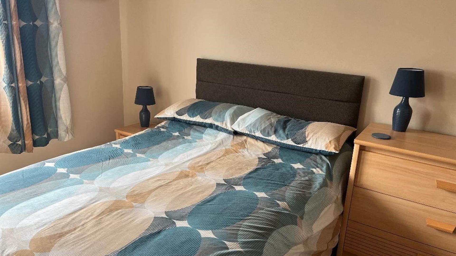 The apartment has 2 double bedrooms with bedside units and wardrobe storage and a bathroom with large walk in shower powered from the gas central heating system.