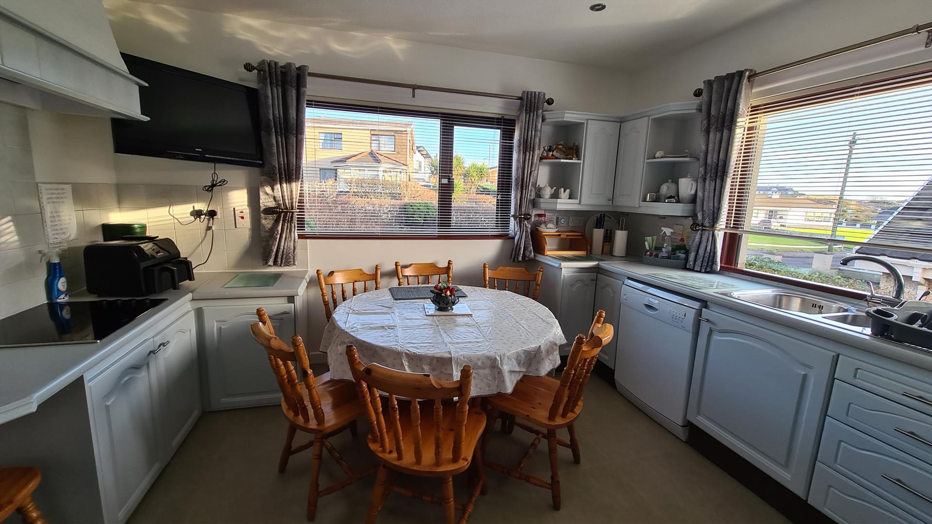 Upper ground floor- consists of well equipped kitchen with all modern conveniences including; microwave, dishwasher, fridge-freezer, electric cooker, hob and air fryer. The large lounge upstairs has views of the beach, Mussenden Temple and Donegal headlands. It is comfortably furnished to include a leather suite, smart TV. The family bedroom has a double and single bed. Shower room with toilet and hand basin. Garage/playroom has a washing machine, dryer and games table. It is suitable for storage and drying of golf and sporting equipment.