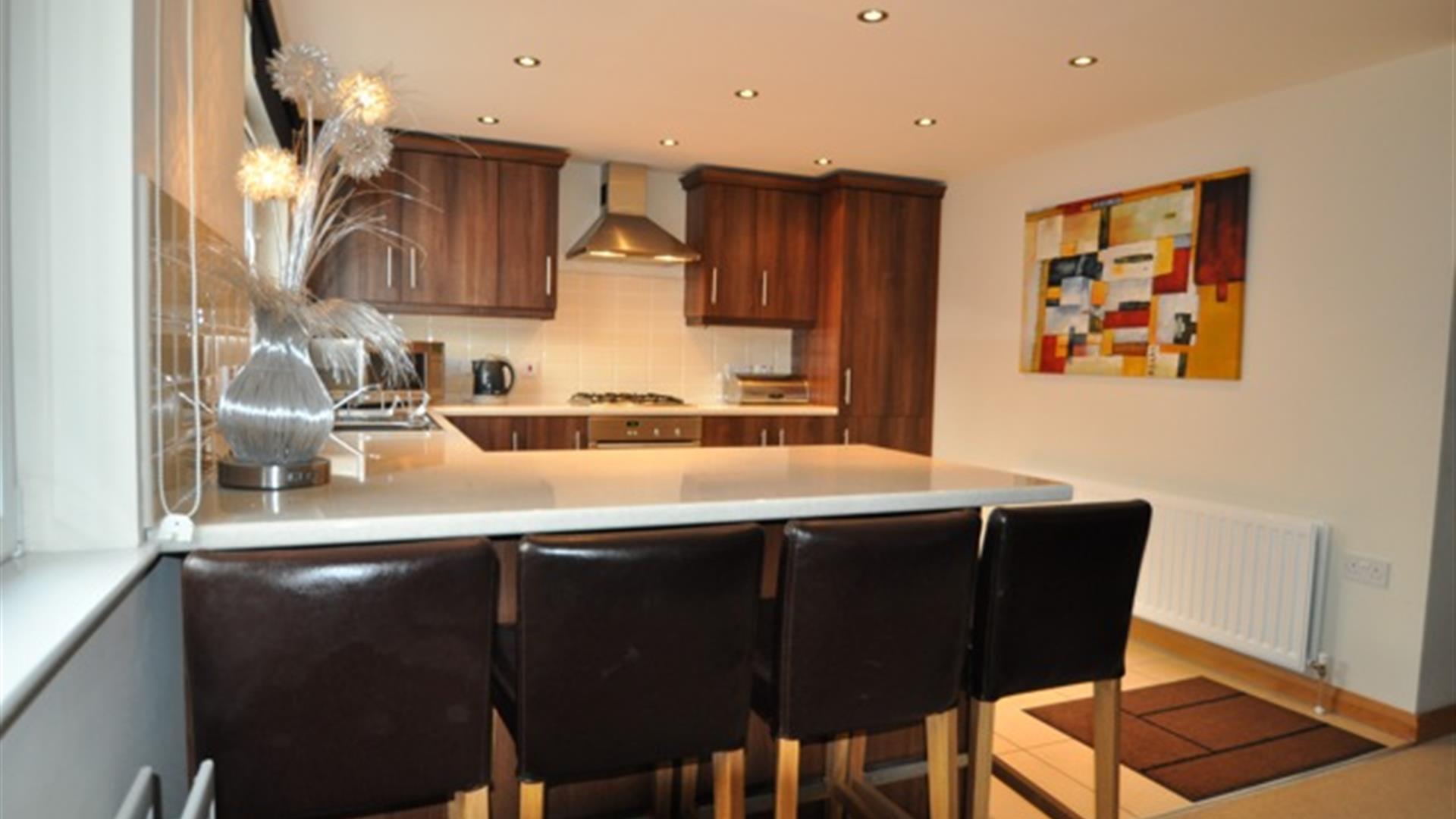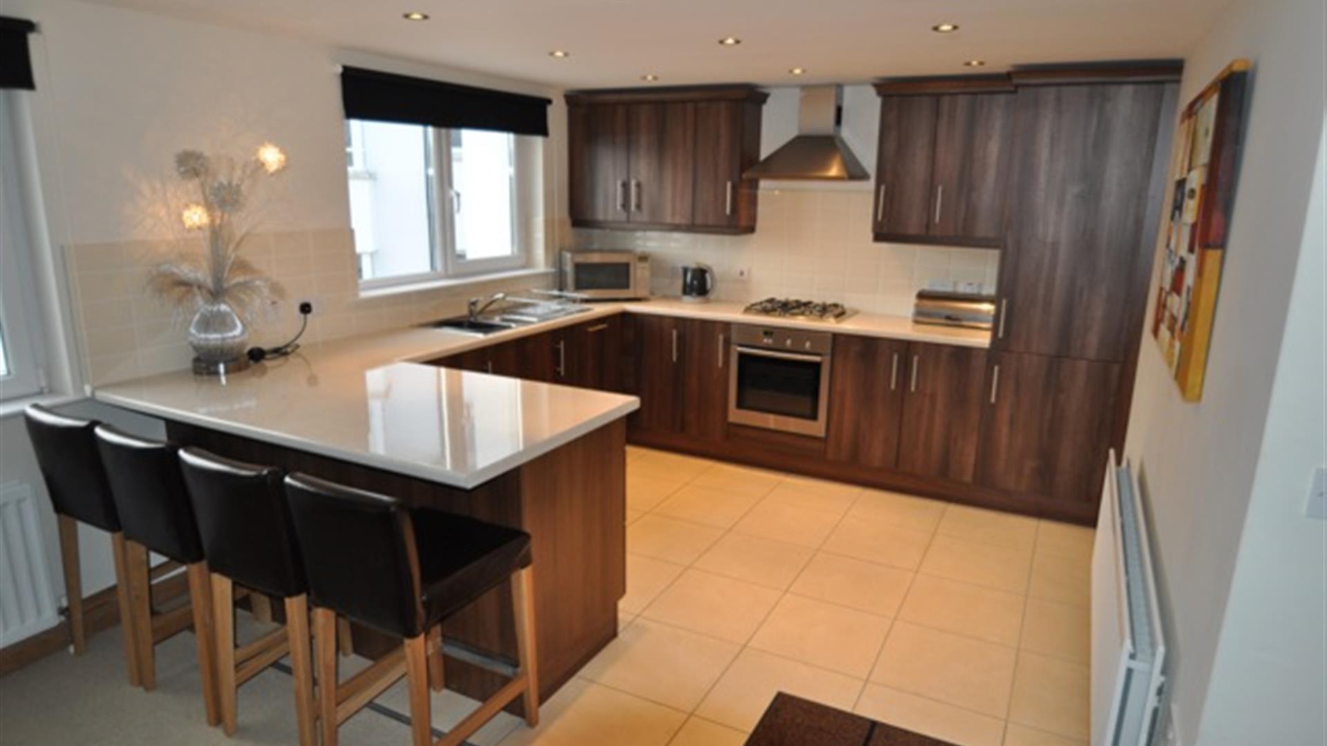 14 Peninsula Apartment is a modern, comfortable, centrally located second floor apartment with a south facing aspect over a large communal roof garden.The apartment has two bedrooms (one kingsize bed & two single beds). The bathroom is fitted with a power shower above the bath and standard WC and basin. The open plan kitchen/lounge is linked by a breakfast bar casual dining area, with south facing views over the rooftop garden terrace.