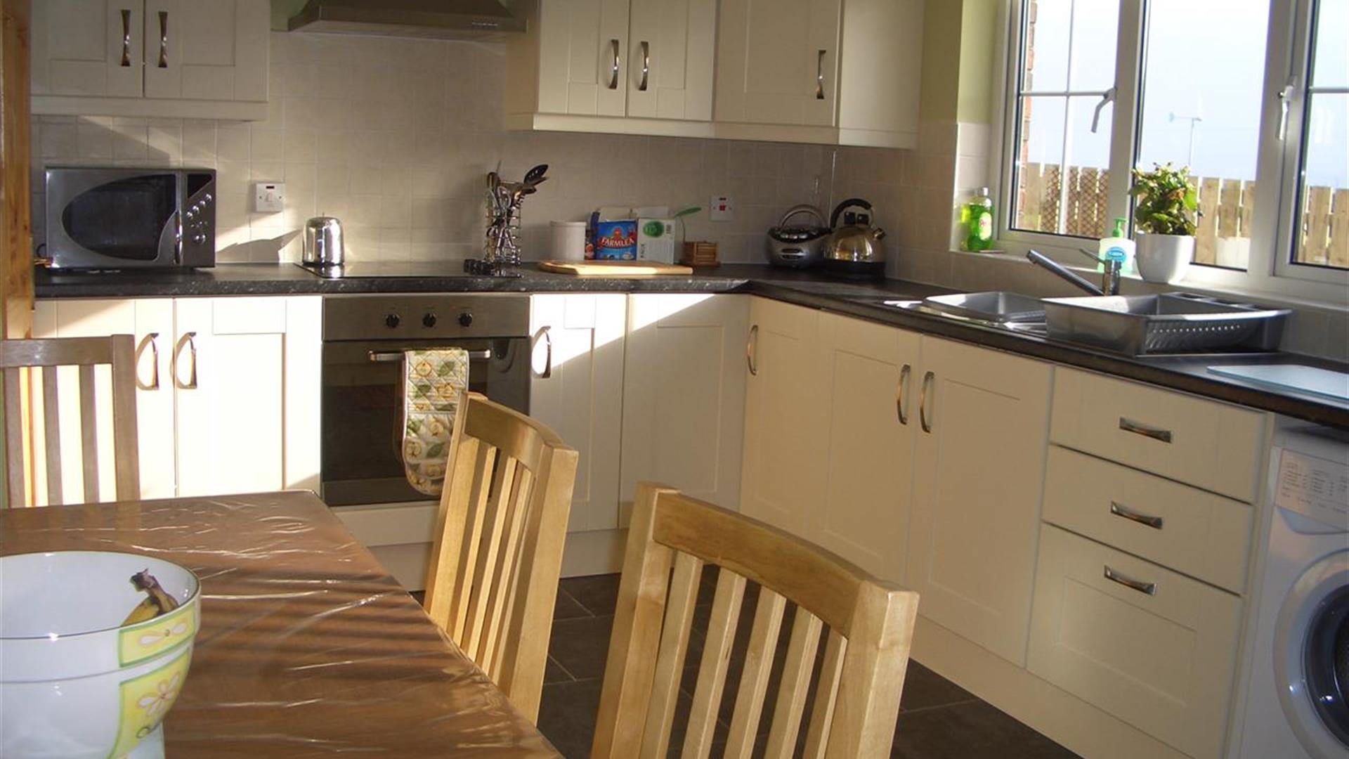 Newly refurbished, well equipped, luxury family accomodation, situated in a quiet cul-de-sac with ample off road parking. Oil heating, open fire place in lounge, downstairs toilet, 1 downstairs double bedroom, 3 other double bedrooms (1 ensuite) and 1 single room. Fully equipped for family holidays including highchair, travel cot and laundry facilities. Large enclosed south-facing private rear garden with patio area, garden furniture and gas barbeque. Five minute walk from Tescos and childrens park. Within walking distance from Portstewart promenade, golf course and strand beach. Strictly no smoking or pets. Linen provided.