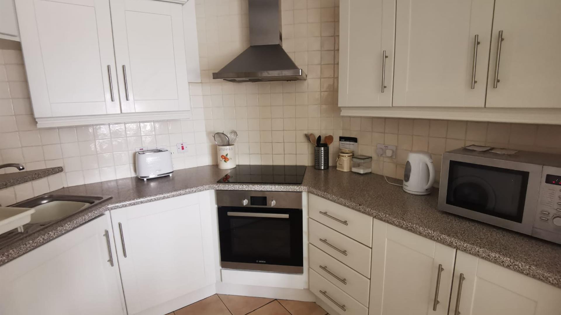 The kitchen is fully equipped with an electric hob and oven, microwave, coffee machine, toaster, fridge freezer and washing machine.