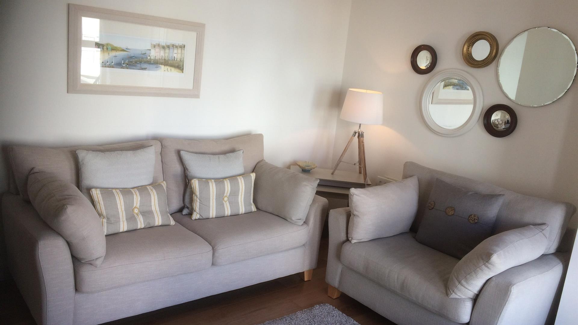 This property is tastefully decorated throughout. Living room with open fire (coal and logs supplied), comfortable seating.Large well equipped kitchen and dining area. Toaster, kettle, electric oven and hob, washing machine, microwave, fridge, freezer. Ample cooking utensils, crockery, glasses and cutlery provided. Indoor and outdoor clothes airing. Access to enclosed south family patio. Sun loungers provided. High Speed Broadband Wi-Fi.