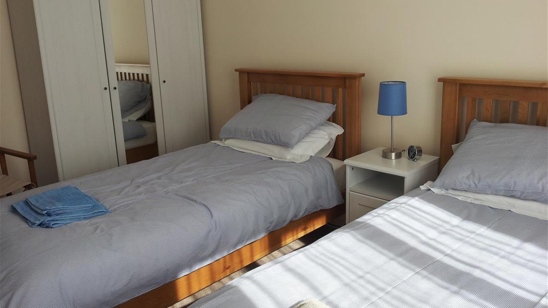Second floor: ensuite bedroom (king-size bed), twin bedroom, bathroom (shower over bath).