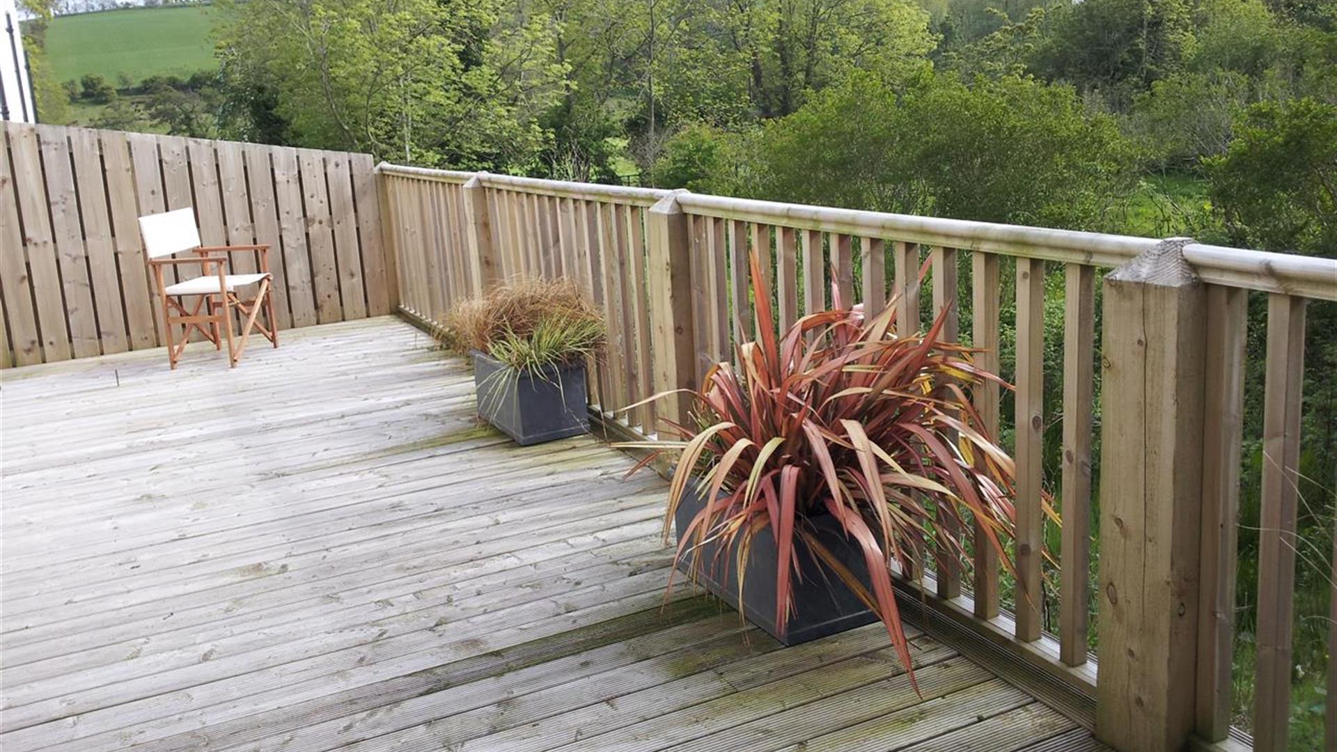 Ground floor: decking to rear, twin bedroom, shower room, sitting room with wood-burner, television and dvd.