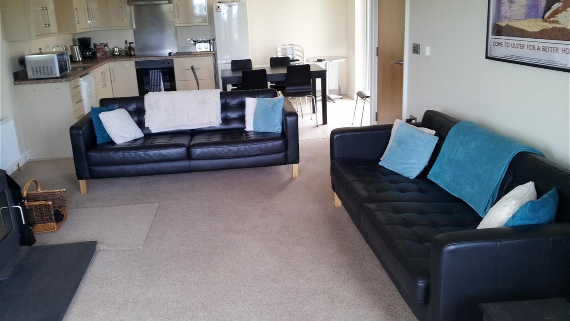 First floor: open-plan kitchen/dining/living room with dishwasher, TV, DVD and wood-burning stove. Drying room with washing machine.