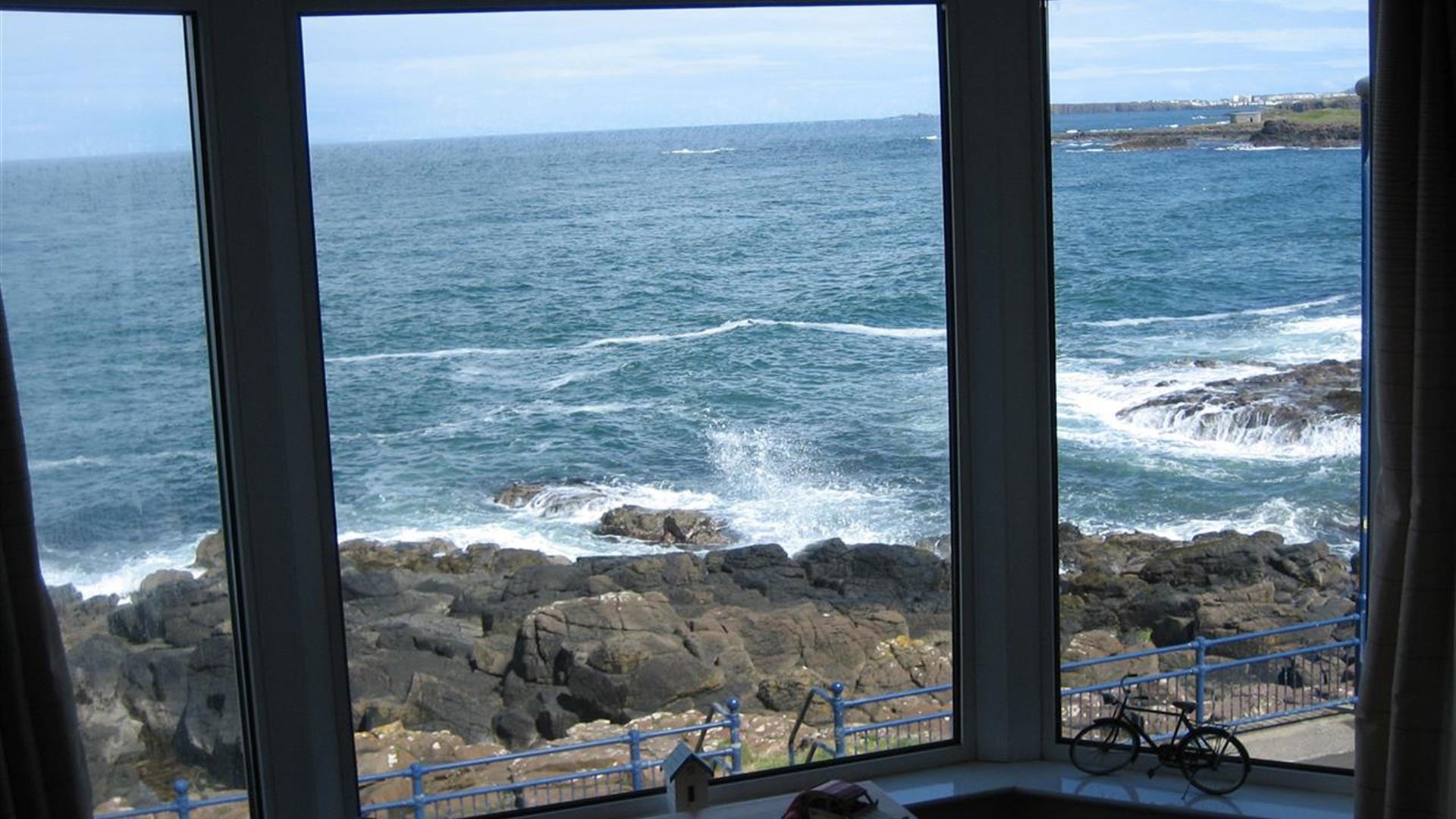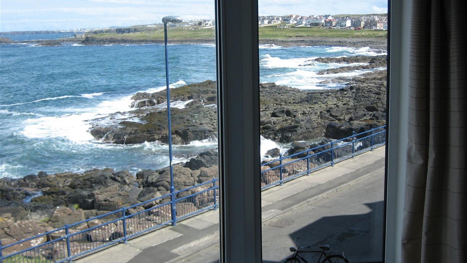 First floor seafront apartment with superb uninterupted views of the coastline and beyond. It is a 2 minute walk to the main Portstewart Promenade. There are fantastic coastal walks or short drives to Portstewart's famous Srand and many of the famous North Coast attractions, such as Giant's Causeway, Carrick-a-Rede Rope Bridge, Dunluce Castle and Bushmills Distillery.The apartment is well furnished with 2 double size bedrooms. Bedroom 1 - double bed. Bedroom 2 - Bunk beds and single bed. The large living room also has a double size sofa bed. The kitchen has all modern conveniences available.