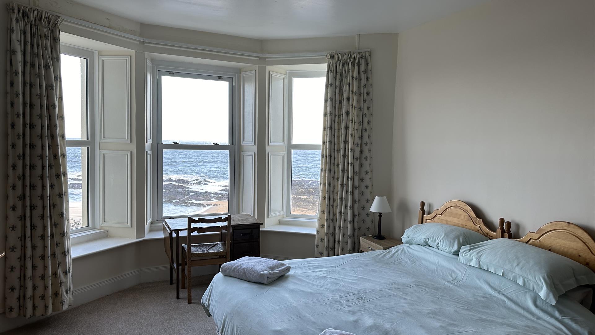 There is a table tennis room on the second floor and 3 front bedrooms with sea views. One room is a triple room comprising of a superking bed (can be split into 2 singles) and a single bed. One room is Kingsize (can be split into 2 small singles). One room has a king size bed. There is a fourth bedroom on this floor with a single bed. One shower room and family bathroom.