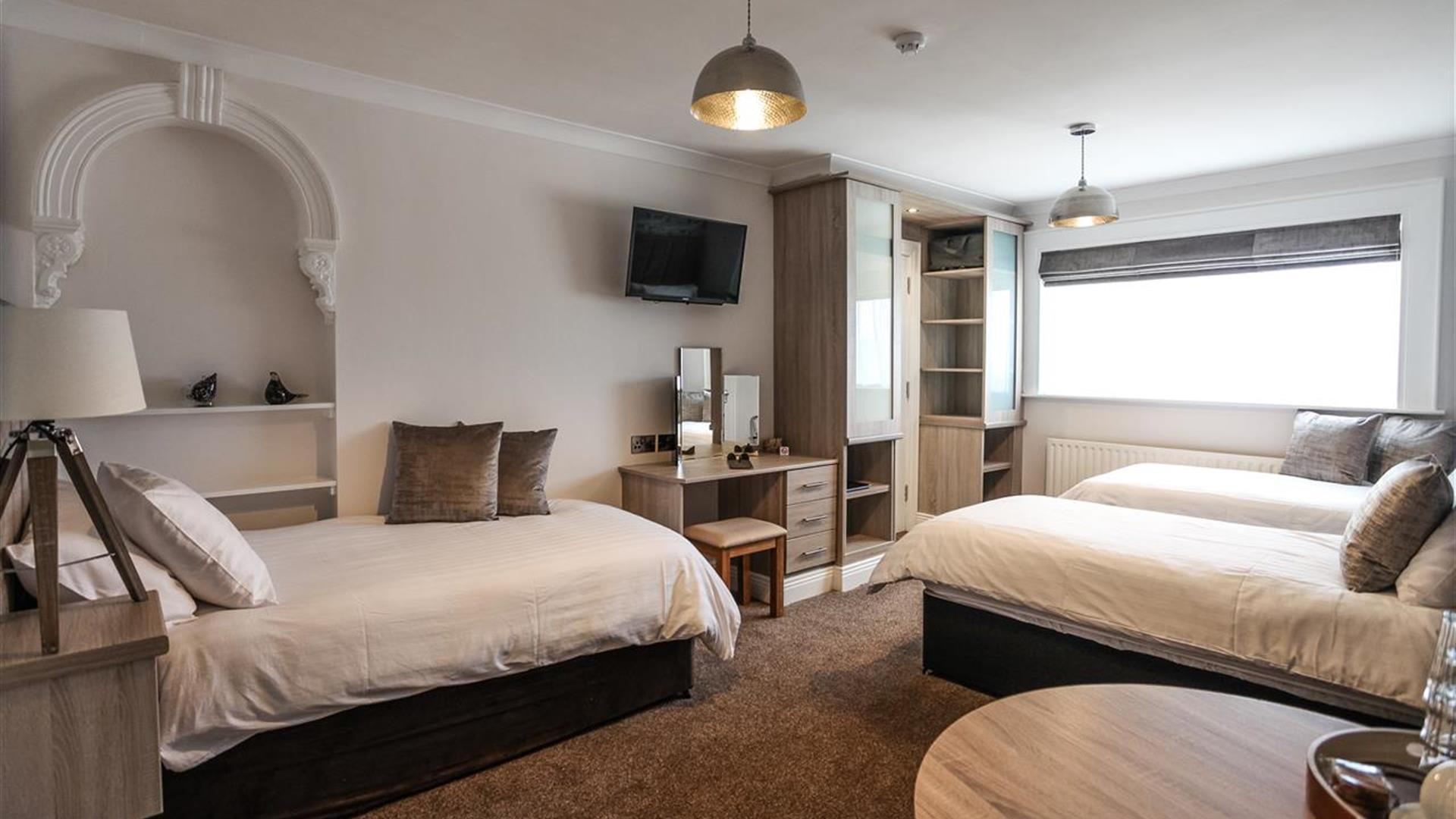 This delightful home in Portrush has provided guests with high quality bed and breakfast accommodation for 30+years. It has recently been extensively renovated and Anvershiel’s guests enjoy the best of traditional B&B experience, free private parking and modern facilities. Six spacious ensuite guest bedrooms offer high speed WiFi, digital freeview TV, DVD players, complimentary tea, coffee and toiletries, a choice of pillow types and a range of high quality bedding. Twin, double, triple and family room types spread over the ground and first floors offer flexible options and an economical stay. A spacious guest lounge contains reclining armchairs, books, board games and the opportunity to chat and make friends amongst other guests. A comprehensive range of tourist information leaflets is maintained and, should you need it, a full in-house laundry service is available for a small charge. Credit card facilities are available in-house.Anvershiels Ulster Fry breakfast is renowned for its quality and served at individual tables in the bright, airy dining room. A wide menu of cooked items and continental style options are offered and each guest’s breakfast is freshly prepared, cooked to order and served by the owners themselves. The attention to detail, the hosts’ geniality, willingness to share local knowledge and the clean and comfortable surroundings at Anvershiel will ensure your stay is enjoyable, relaxing and genuine ‘home-from-home’ experience. Please do read our Trip Advisor reviews and explore the virtual tour of the house on our website www.anvershiel.com.