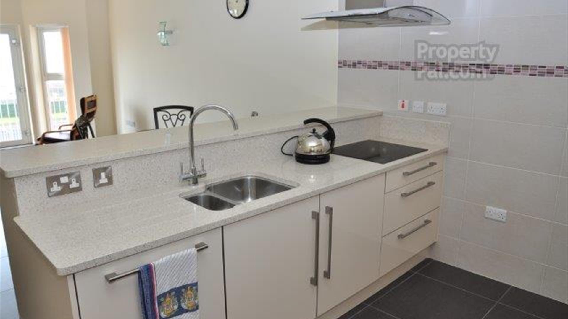 Recently modernised first floor apartment boasts views of the West Strand and Portrush Harbour. On a good day you can see the hills of Donegal. The apartment itself has two bedrooms, one with en suite facilities. There is a separate bathroom both of these have Neptune shower enclosures. The kitchen/ lounge area is tiled and has a washer/dryer, fridge freezer, dish washer, microwave, hob and oven. The gated car parking is at the rear of the property.