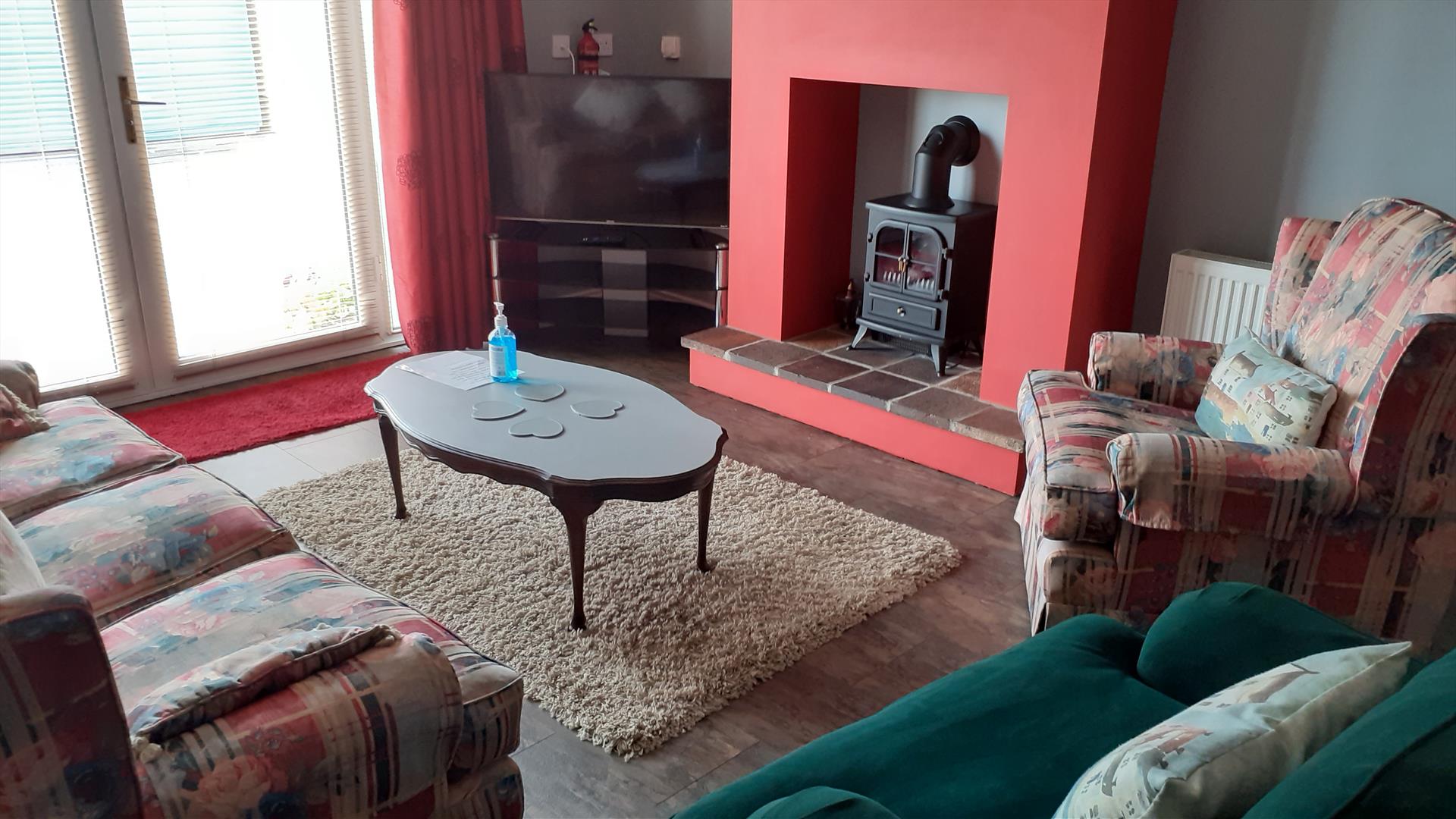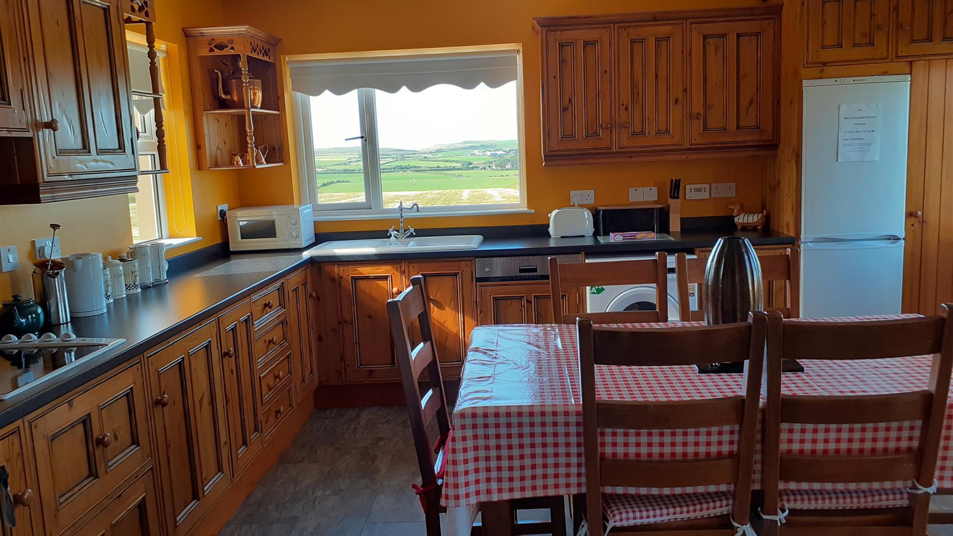 The cottage offers a sitting room with three-seater sofa, two chairs, tv and electric fire stove. Two bedrooms and wc upstairs. Fully equipped kitchen including cooker, hob, microwave, fridge freezer, washing and tumble dryer machines. Bathroom with electric shower. Oil fired central heating.