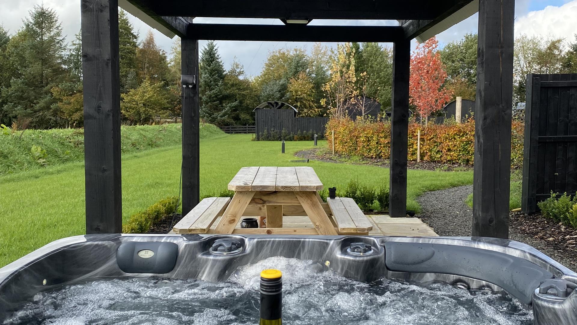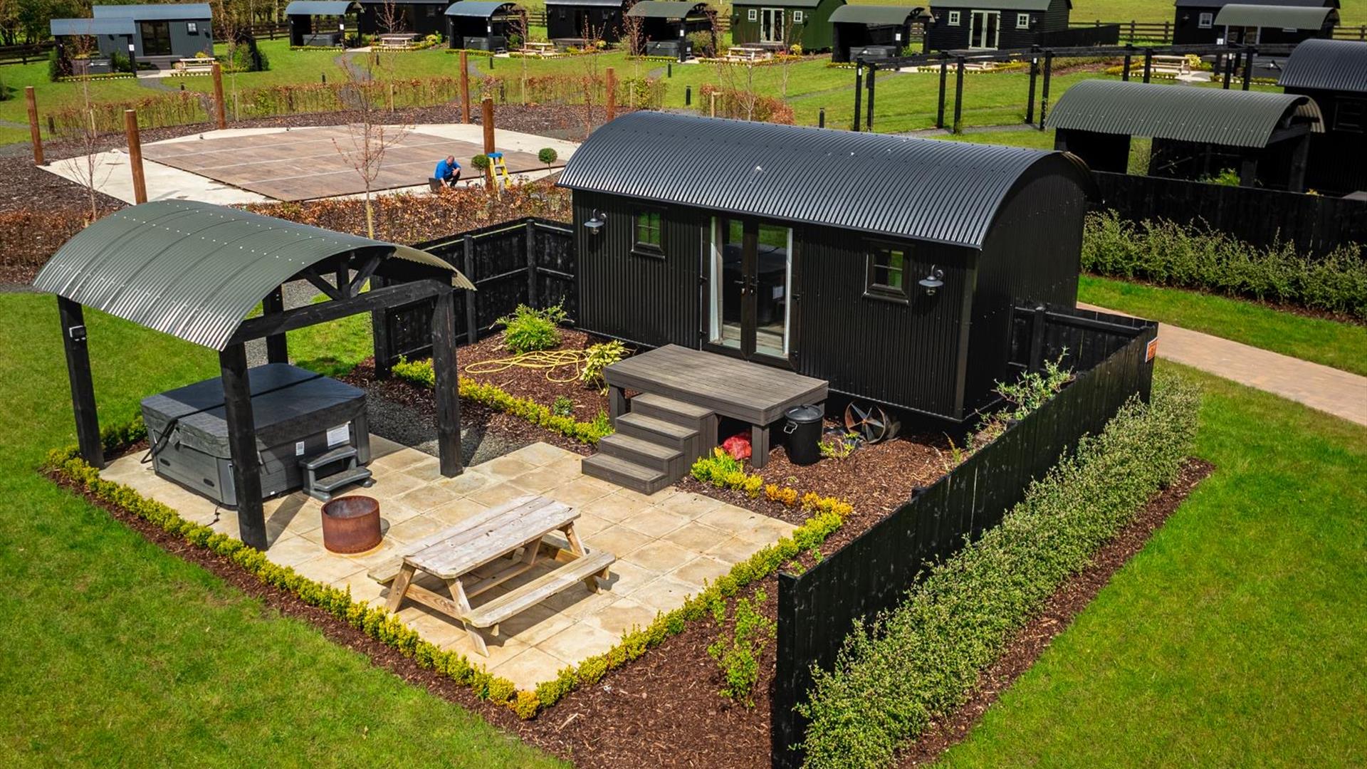 Every shepherd’s hut also features its own private outdoor space, where guests can relax and unwind. But the true highlight of each retreat is the exclusive hot tub area, offering a perfect spot to soak in the beauty of the surrounding nature while enjoying a moment of pure relaxation. Whether you’re stargazing at night or watching the sunrise over the landscape, the hot tub adds an extra layer of comfort and luxury to your stay.