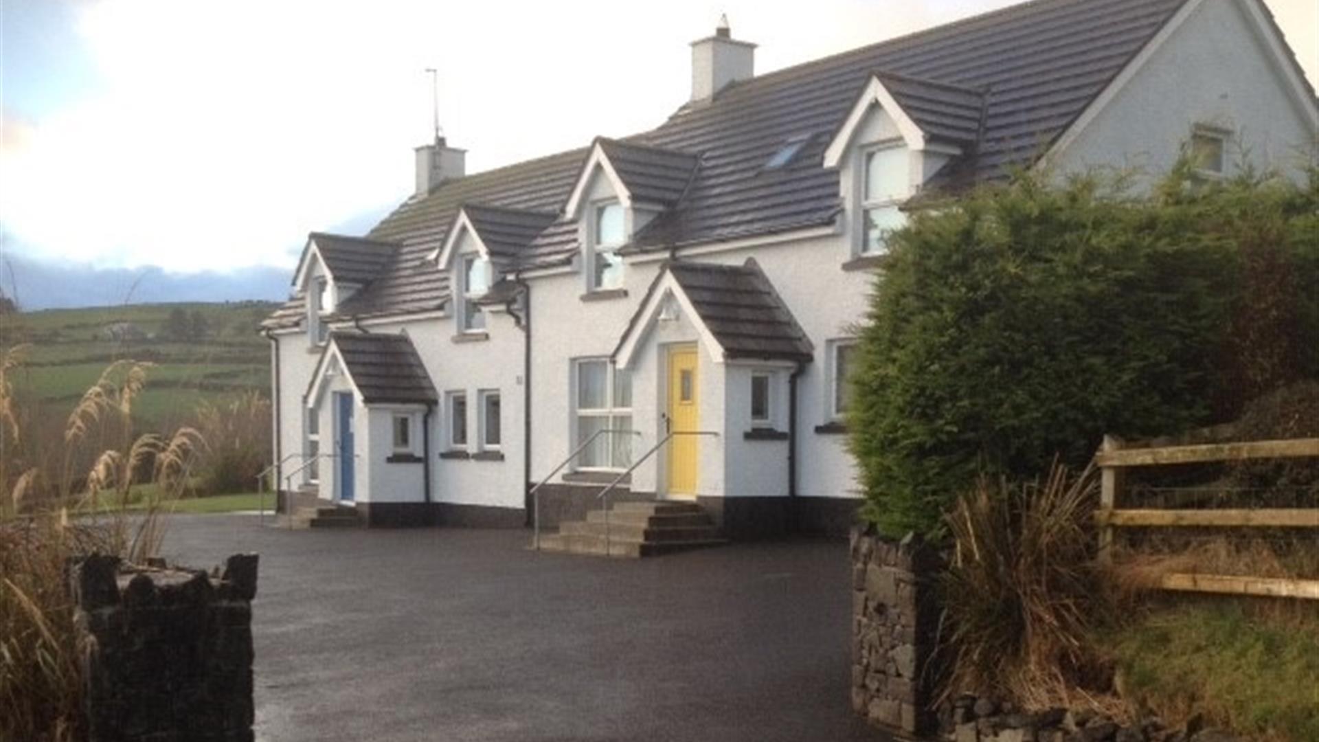 Luxury 4 bedroom cottage sleeps 8 (yellow door) is set in a wonderful location of the pretty village of Cushendun. It boasts outstanding panoramic views across Cushendun Bay and the beach.Approximately ten minutes walk down to the village across the beach where you can enjoy Mary Mc Brides bar and restaurant. Ideal base for visiting Giant's Causeway, Bushmills Distillery, Carrick-a-Rede Rope Bridge and the famous Glenariffe Waterfalls. Follow the Game of thrones tour and visit Cushendun caves Dark hedges and Balintoy harbour. Local area includes golf, fishing and horse riding. The cottage has free wifi and private parking. Built in traditional style with timber floors, modern kitchen and open fire. Consists of 1 kingsize ensuite and 1 double ensuite bedroom with easy access walk in shower suitable for disabled users on ground floor. Also 2 twin bedrooms and cot and high chair available. Ideal for quiet break or booked with other Beachview Cottages perfect for large family gatherings. Pets welcome please enquire.