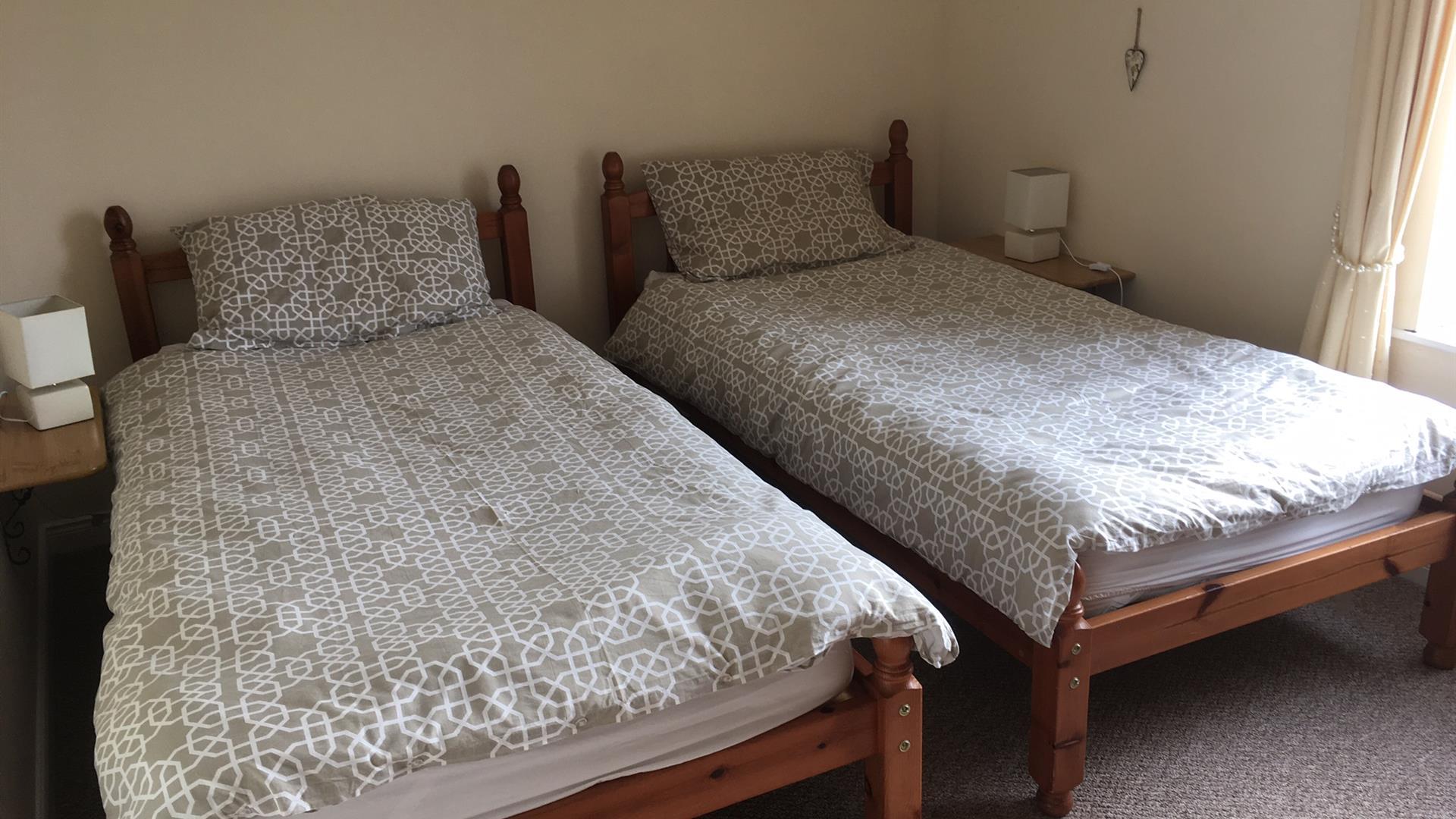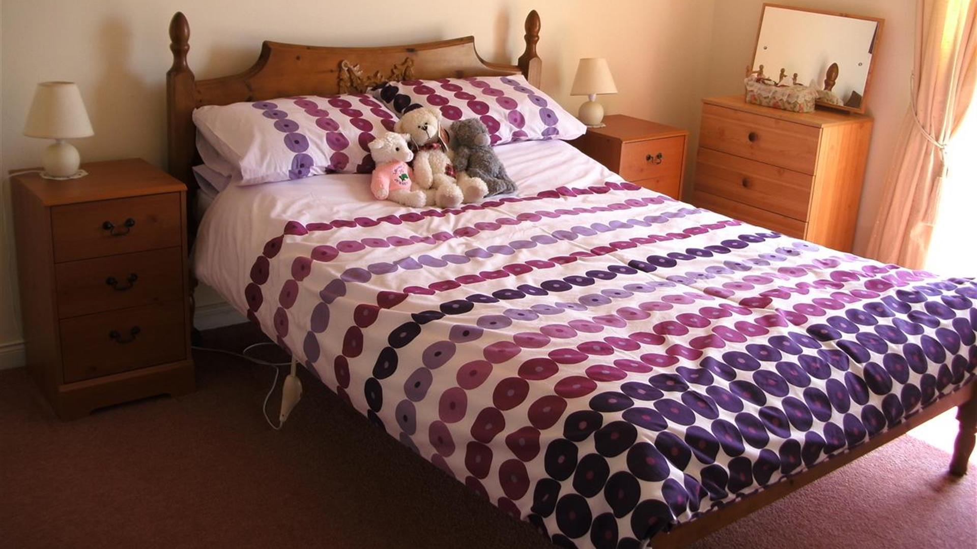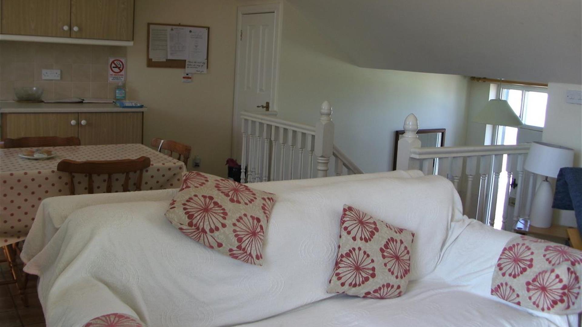 Two downstairs bedrooms, 1 double with patio door to rear garden, 1 twin, also spacious bathroom with bath and electric shower. Upstairs is a TV lounge with patio doors opening into a sheltered balcony, well-equipped kitchen and dining area. Ouside, the cottage has its own private car park to the front and patio garden to the rear.