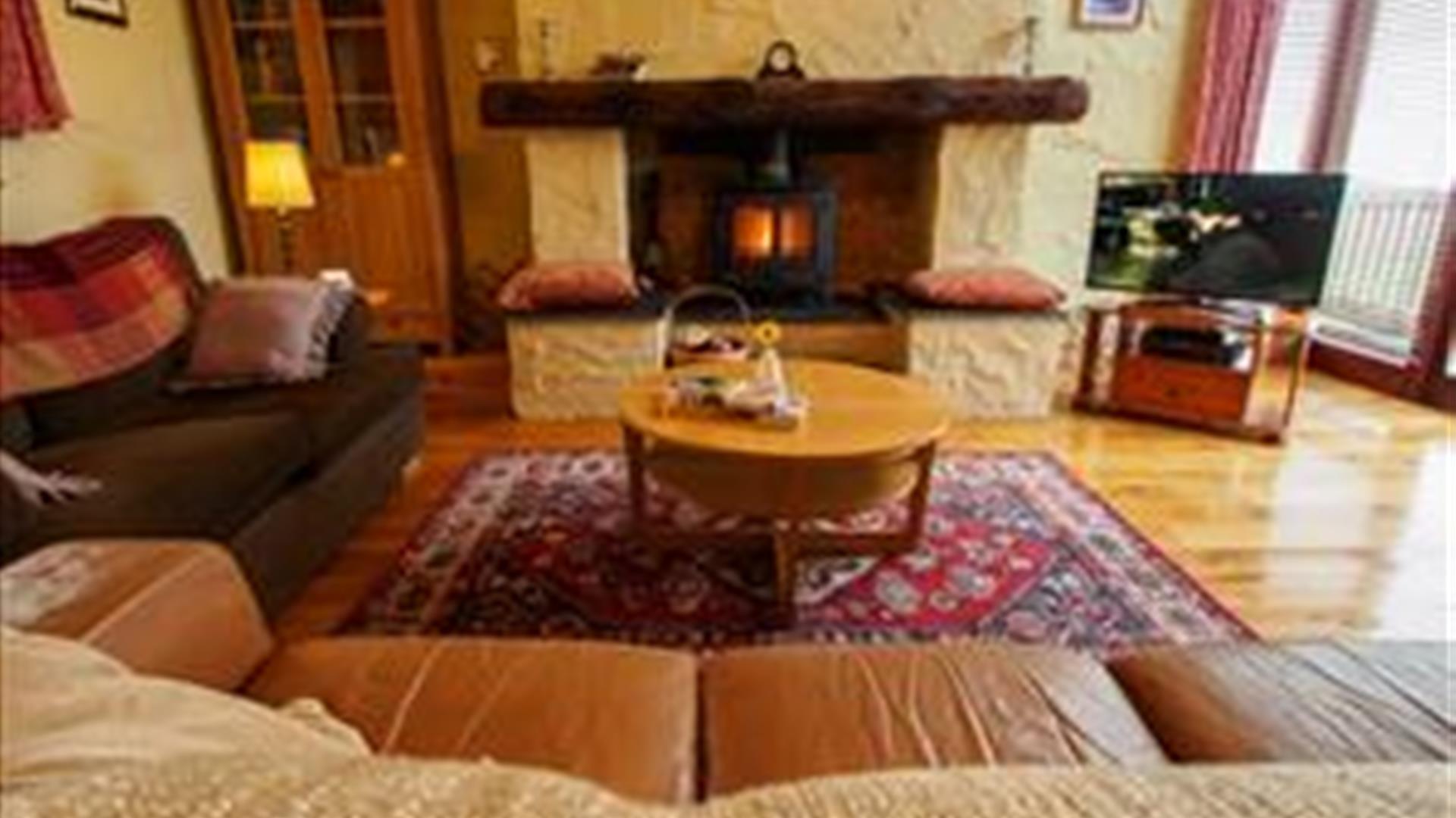 First floor accommodation consists of a spacious lounge with wood-burning stove and smart tv, a separate sitting/reading area, balcony with outside steps to rear patio (both ideal for outside entertaining), fully-fitted kitchen/dining area with electric oven and gas hob, AGA, built in microwave oven, dishwasher and fridge freezer. There is also a toilet on the first floor.