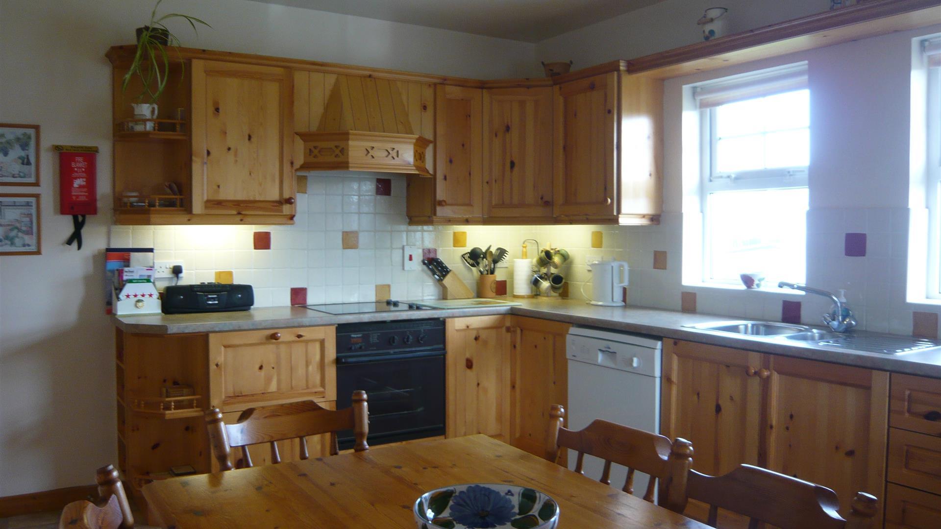Beautifully furnished and superbly equipped 3 bedroom (1 ensuite) bungalow. Situated in a quiet cul de sac. Garden with patio furniture, BBQ. High chair and travel cot available. Price includes bed linen and heat. 1/4 mile to village, beach, golf course, scenic walks. Ideal base for golfing and touring Antrim coast, L'derry and Donegal. 5 minutes to train station connecting Belfast to L'Derry.