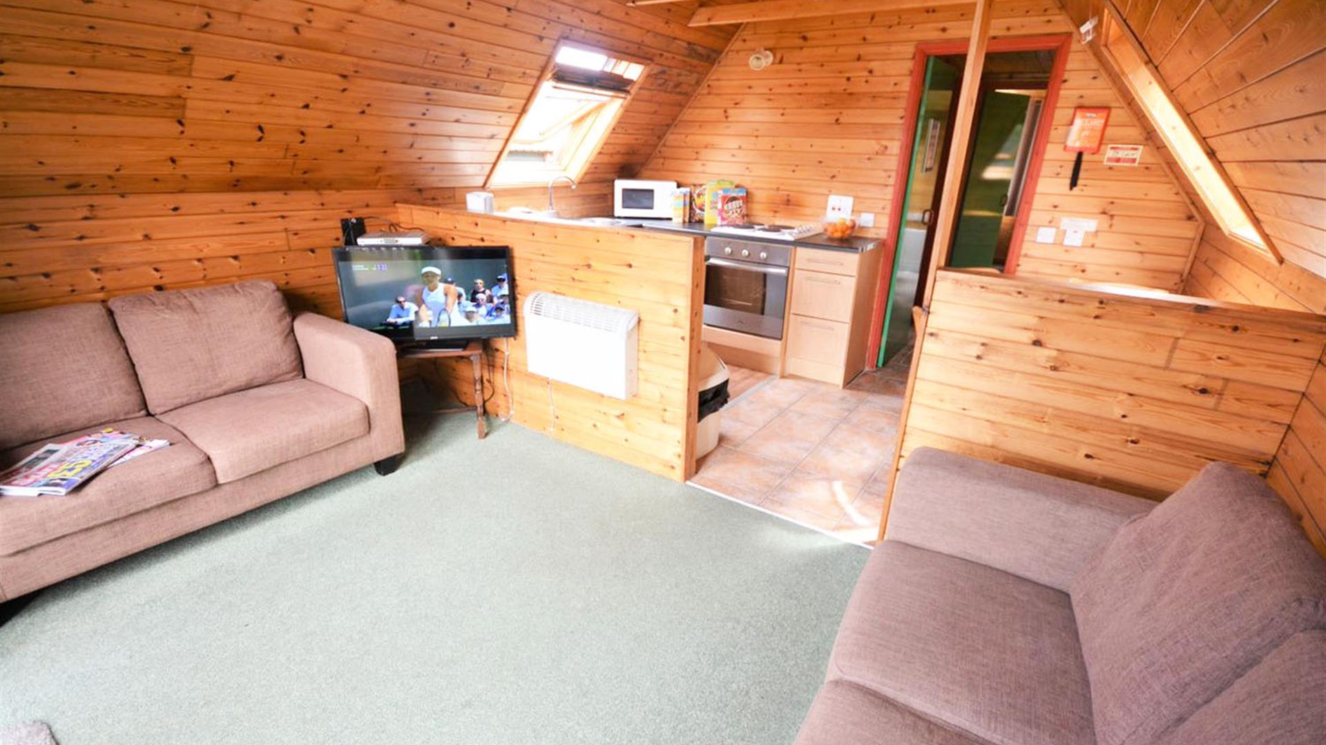 These Glamping Lodges are comfortable, spacious and relaxing. Detached and ideally placed within the holiday park, our Glamping Lodges have their own veranda so you can relax and enjoy the summer evenings or cool autumn nights. This two bedroom lodge sleeps up to 4 people, one double room and a set of bunk beds in the single room. The Glamping Lodge has a galley style kitchen which includes an oven hob with grill, and a microwave. There is small dinette and a comfortable lounge with soft furnishings.