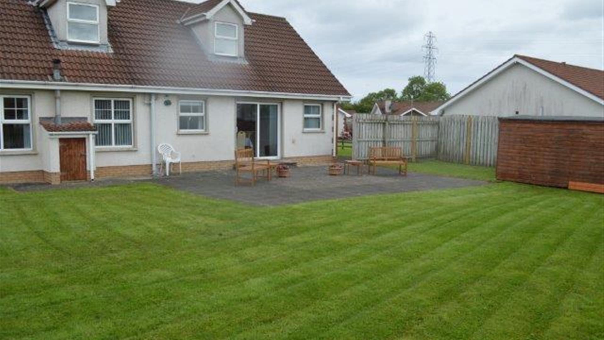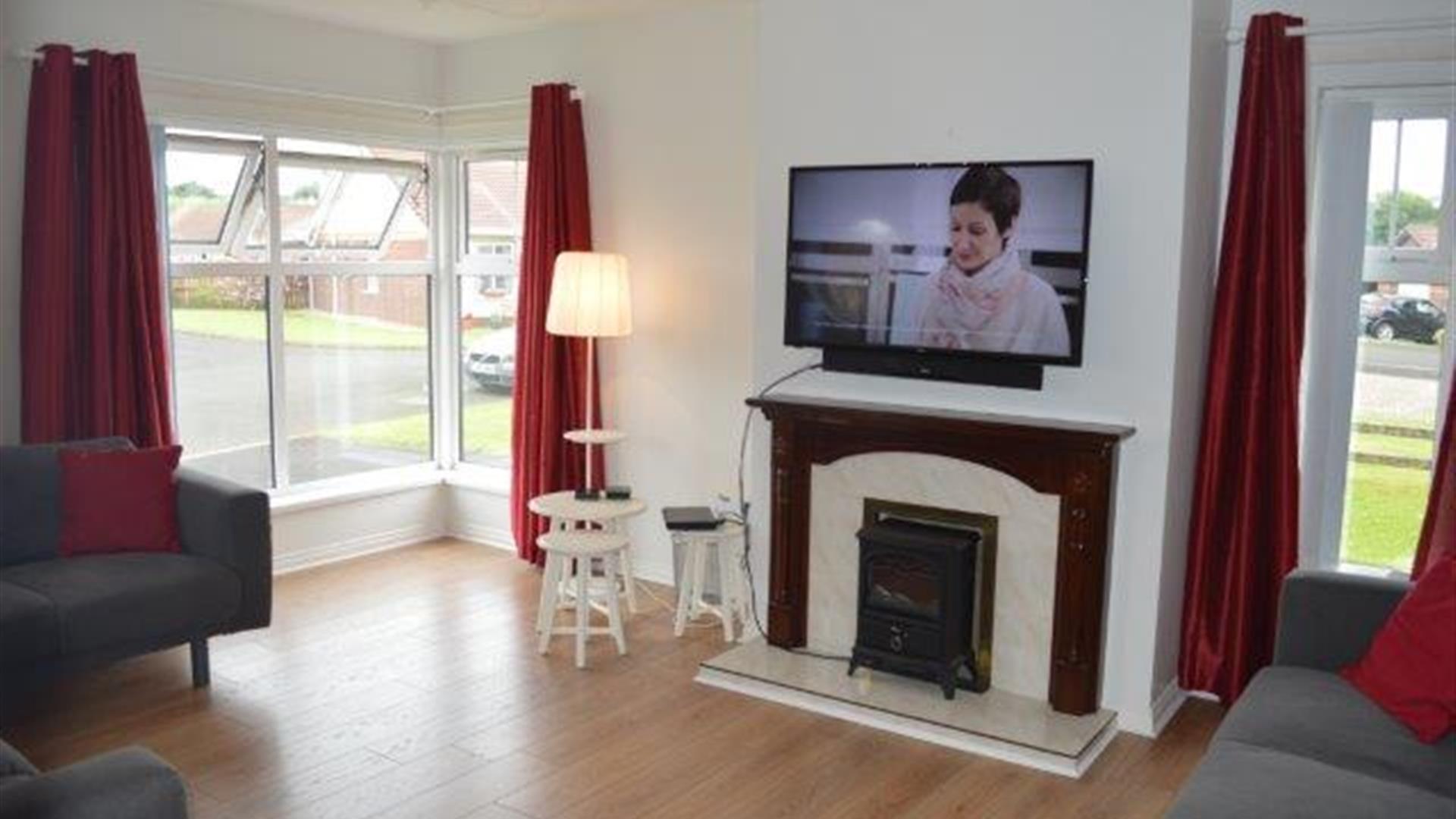 Causeway Lodge, Coleraine, is a uniquely large stylish modern bungalow situated at a convenient location for exploring the stunning Causeway Coast in Northern Ireland. Breath-taking walks along the golden beaches of Portstewart, Portrush, their championship golf courses, promenades and award winning restaurants are ten minutes by car, or nearby train or bus. Within a 20 minute radius by car is the Giant’s Causeway, Dunluce Castle, Carrick-a-rede rope bridge, the Dark Hedges, Ballintoy Harbour, Bushmills Distillery, Mussendun Temple, Castlerock, Downhill and Benone beaches. It is five minutes by car to shopping in the quaint Coleraine.It is specially equipped for groups or extended families with children/grandparents. It has sports equipment drying and storage facilities, a large lounge with a stove and Smart TV, wi-fi, mobile charge points and coffee/expresso maker, dishwasher and two fridge freezers. Adjacent to Ulster University’s parkland Coleraine campus it has an enclosed garden, large patio and gas barbeque. On the ground floor it has three single rooms, all with sinks, a double ensuite and bathroom. The first floor has two double ensuite rooms, two single rooms, with sinks and a shower/bathroom.