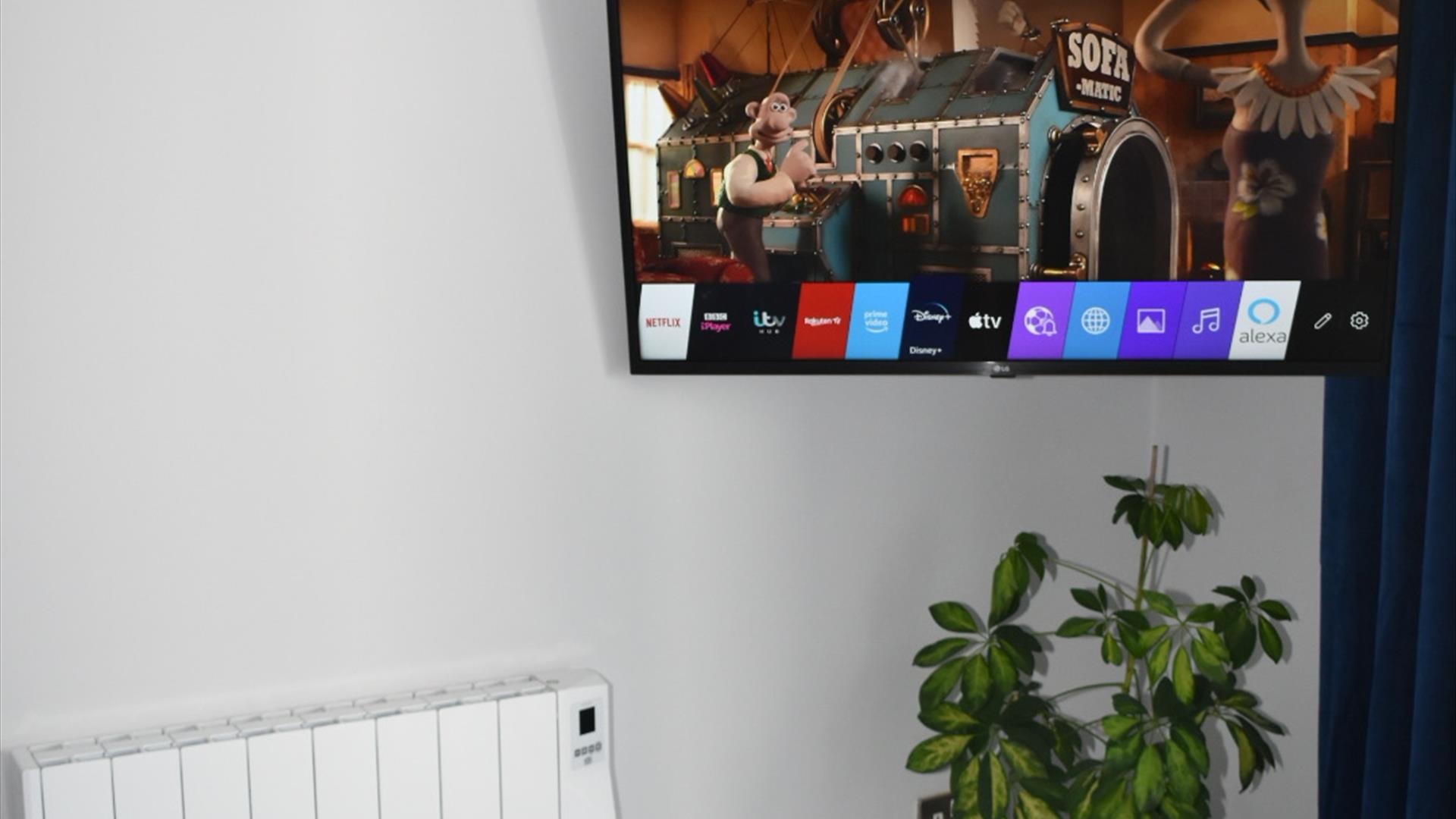 The spacious living room area has a dedicated dining spsce with table and four chairs, recliner sofas for rekaxing after dinner and a large screen smart TV with Netflix. There is a south facing outside balcony with table and chairs to enjoy the evening sun.
