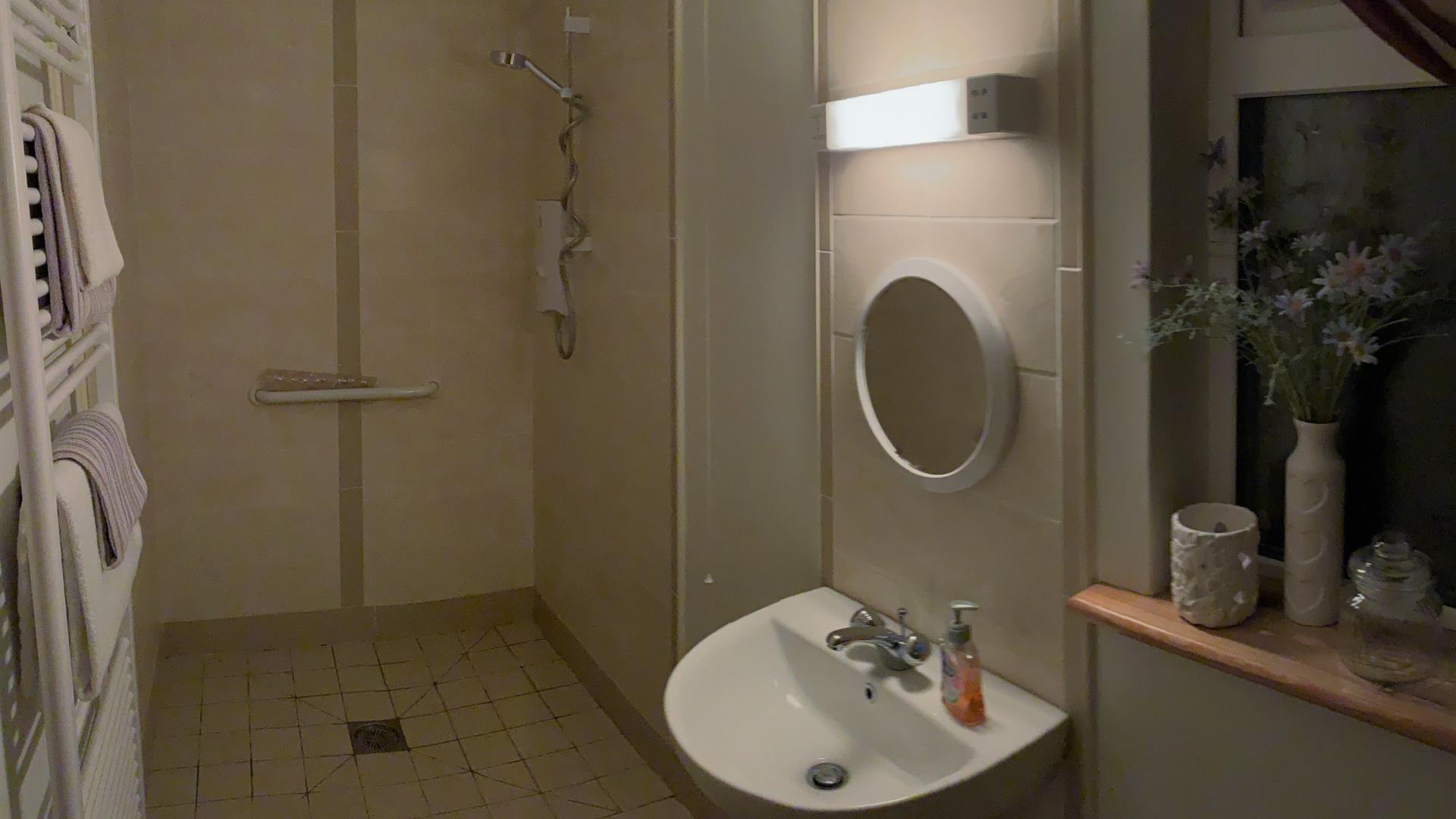 The second bedroom has a twin (two single) beds and next door is the bathroom with power shower and bathtub. Both cottages are family and pet friendly, and suitable for elderly/those with mobility difficulties.