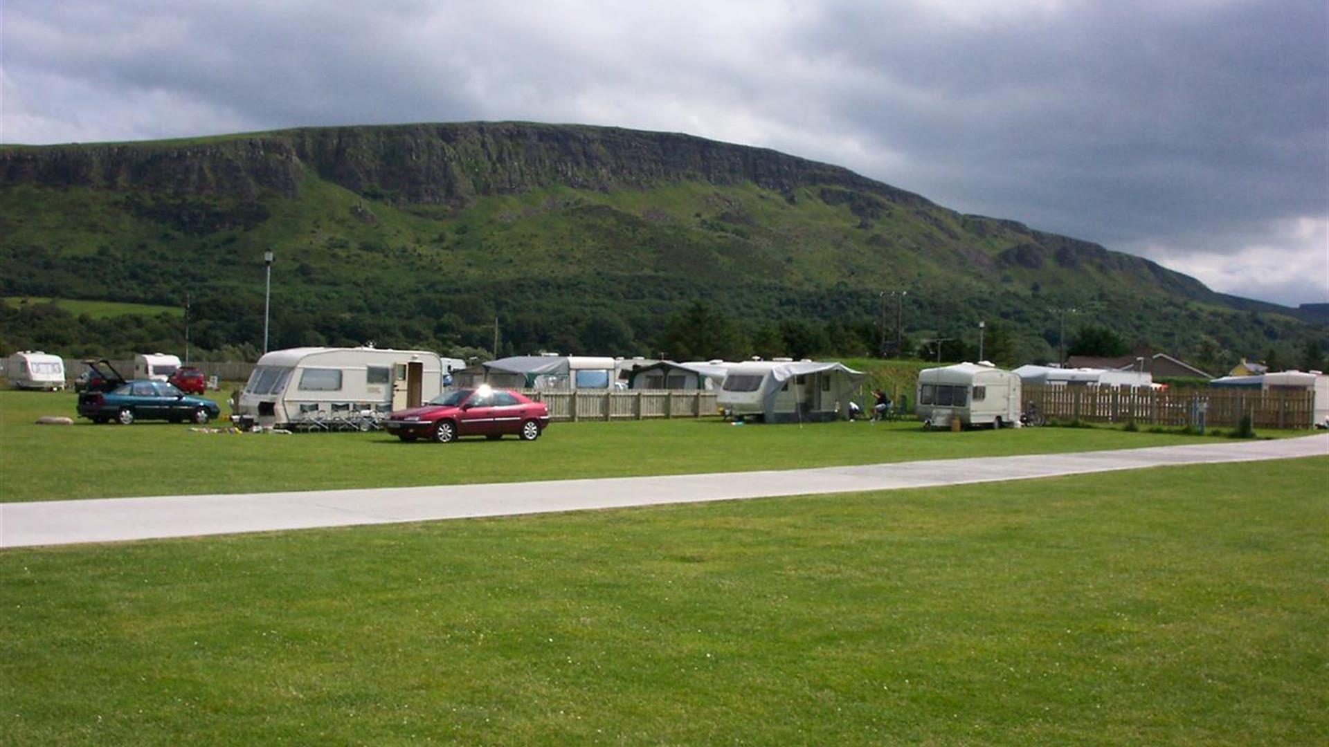 Off A2 coast road between Limavady and Coleraine. Follow signs for Benone. Adjacent to seven miles of sandy beach. Ulster Gliding club nearby.Aire De Service - free and available to guests