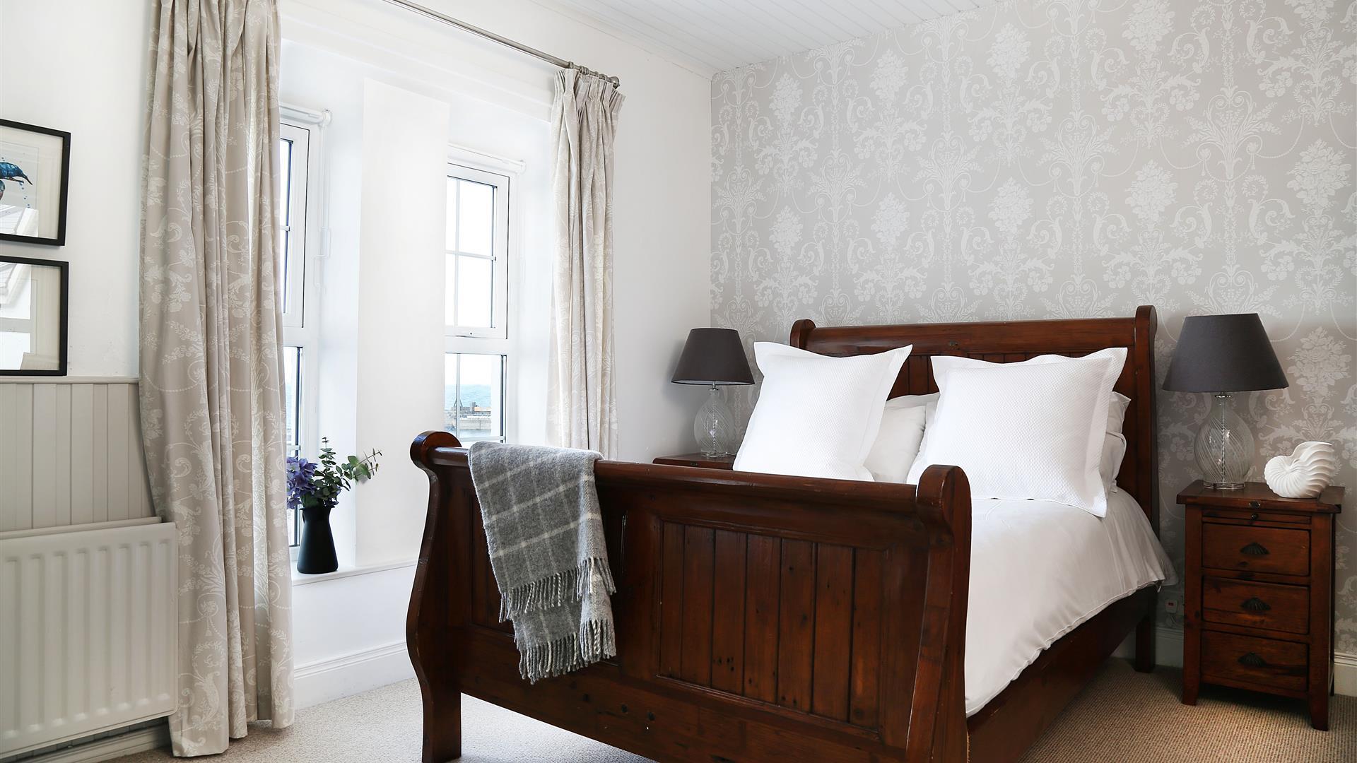 Enjoying panoramic Atlantic views, Dhu West offers luxury accommodation in the heart of the Causeway Coast.A restored Victorian townhouse, this spacious property has five double bedrooms each with their own bathroom and dining room complete with grand piano. Guests can enjoy panoramic views of the County Londonderry and Donegal coastlines in front of a roaring fire from the first floor lounge or kick back in the cinema snug, complete with 50” HDTV and surround sound system. A heated and spacious kit room provides space to dry off beach and golf apparel.The generous private patio accommodates barbecues and outdoor relaxation.