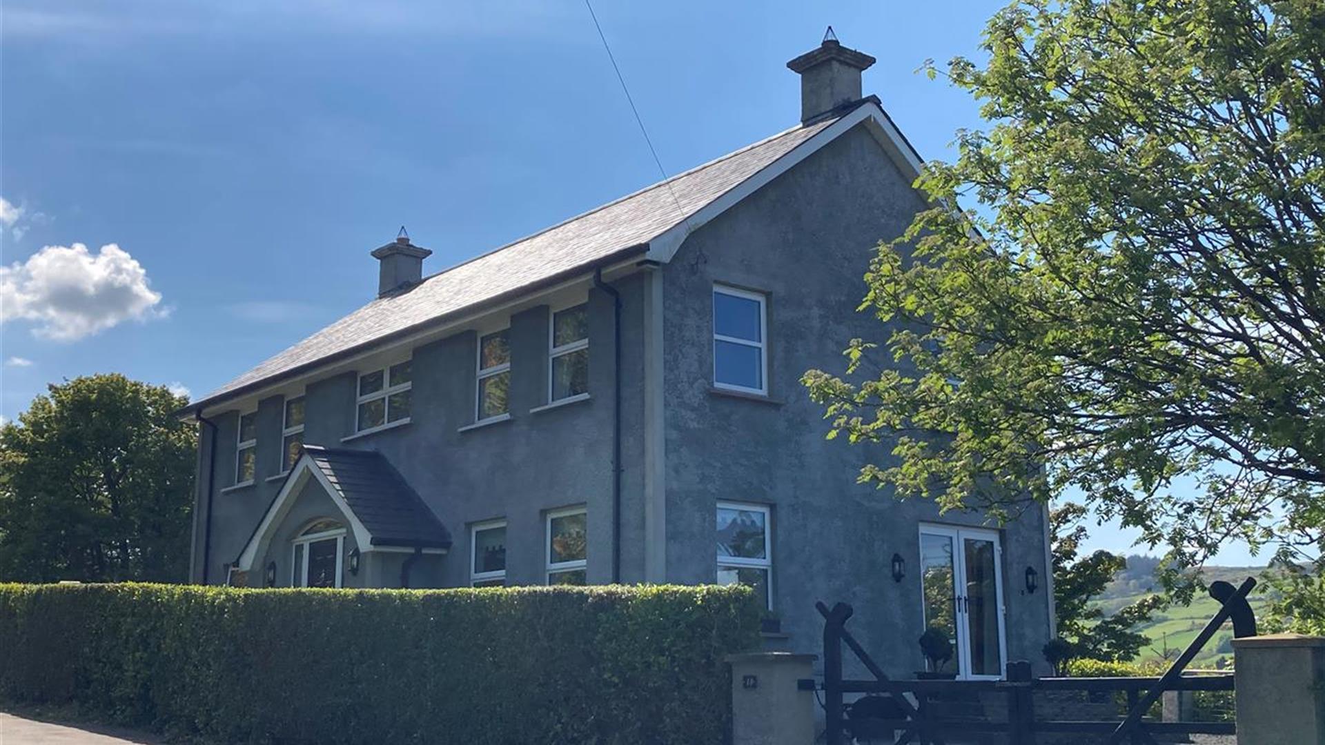 With the towering Lurigethan Mountain rising behind the village and Glenballyeamon…