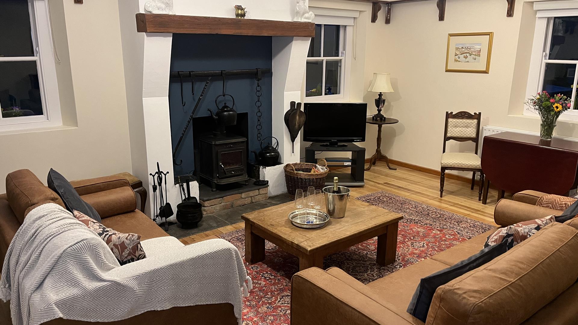 Inside, the cottage exudes character with its authentic wooden floors, ceiling beams, cozy log burner fireplace, and quaint dutch/stable front door. Seamlessly blending traditional charm with modern comforts, the cottage ensures a delightful stay with newly furnished bedrooms, living room, and contemporary bathroom amenities.