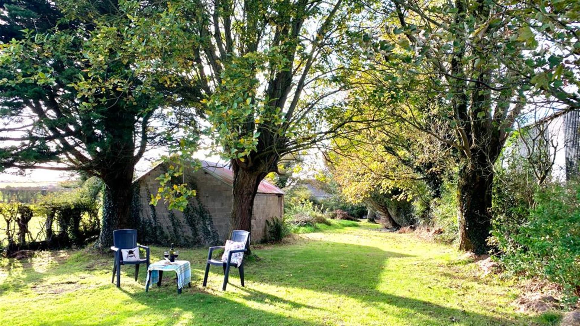 An acre of mature garden to rear of property that is shared with the patrons of the main house. There are many private areas relax and dine. The expansive garden catches sun throughout the day with many mature trees to shade under. Tyre swing and large lawn area.