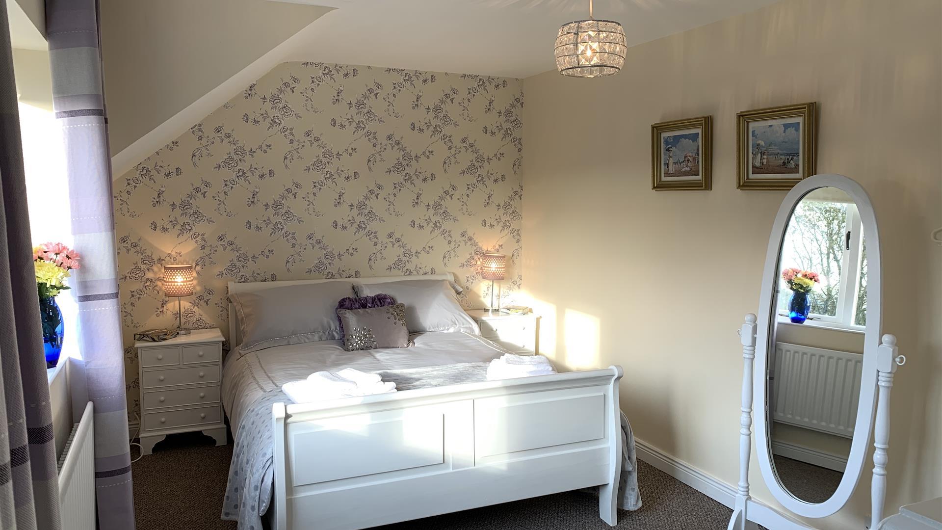 Bedroom 2 - A large window overlooking Lough Foyle with a very comfortable double sleigh bed, bedsides tables, vintage dresser, full lenght mirror, hanging space and a black out blind.