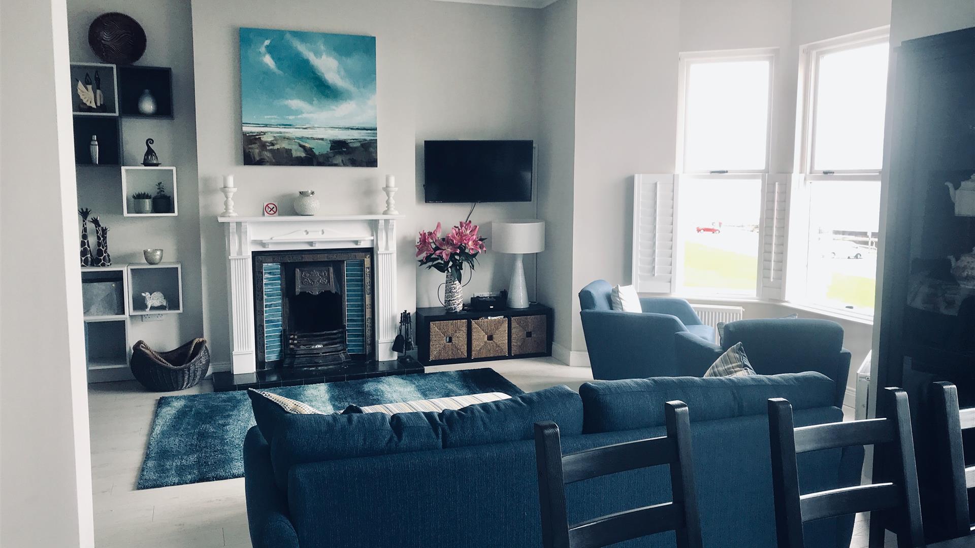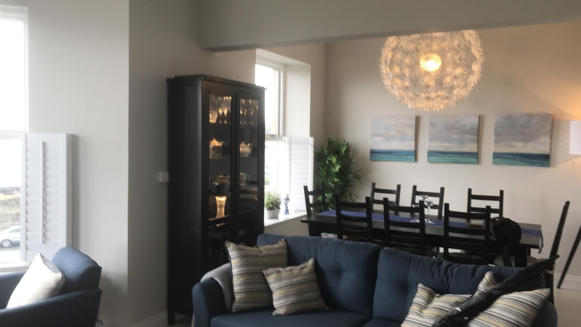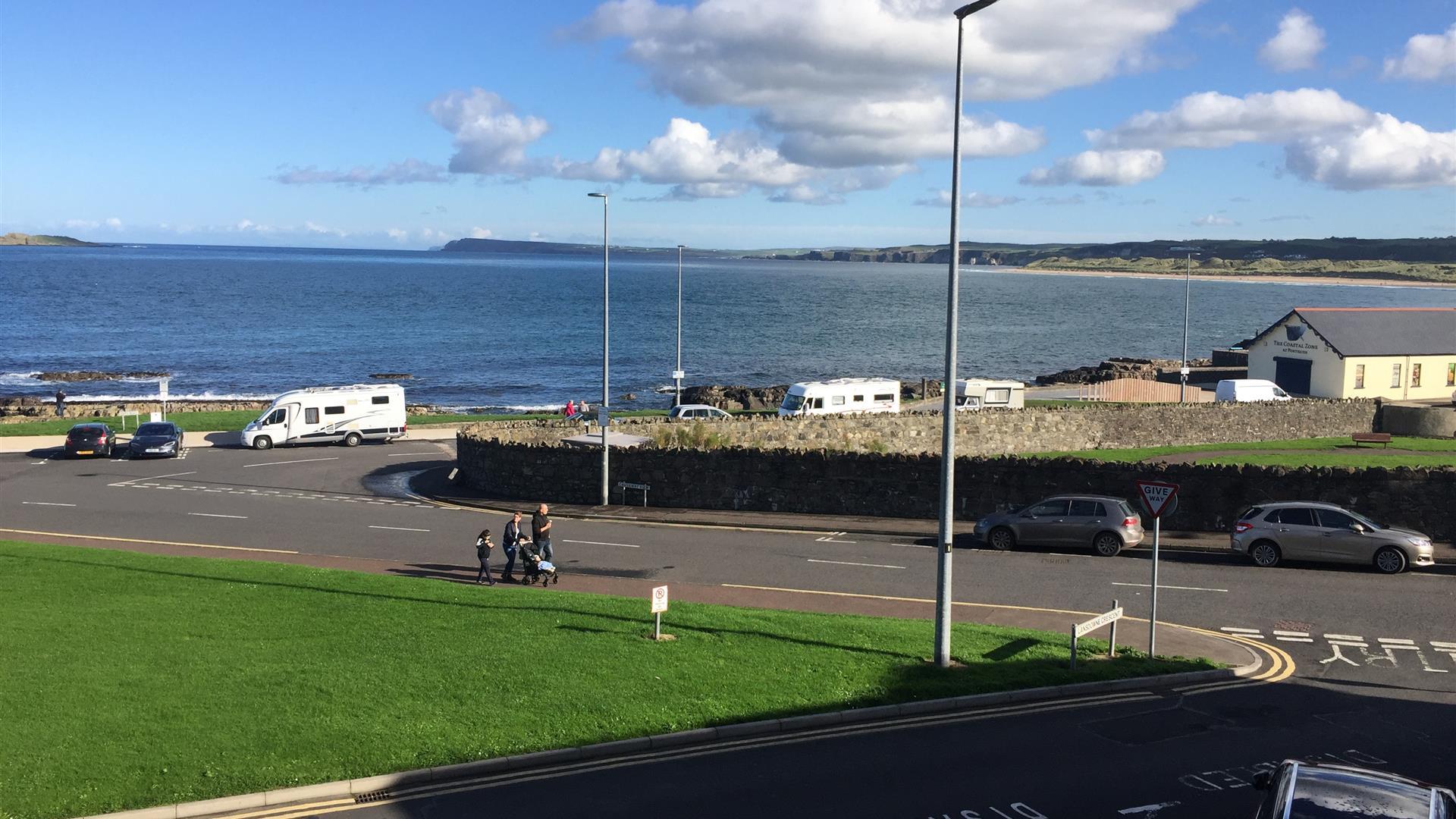 A very luxurious a modern and spacious 3 bedroom and two living room first floor apartment with stunning unobstructed panoramic views of the Wild Atlantic over the East Bay of the Royal Portrush Golf Course, the White Rocks Beach, the Giant’s Causeway and the Skerrie Islands.You can sit for hours watching the ever changing sea and views. Binoculars provided.