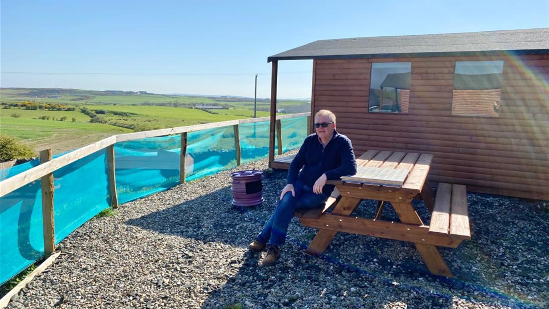 These cabins sleep 4 with a double bed settee and 2 child chair beds. They are fitted out with a kettle, toaster, fridge, television and they have charger sockets. Outside is a picnic table and views over the countryside. It is only a 3 mile drive to Portrush town, facilities and beaches.