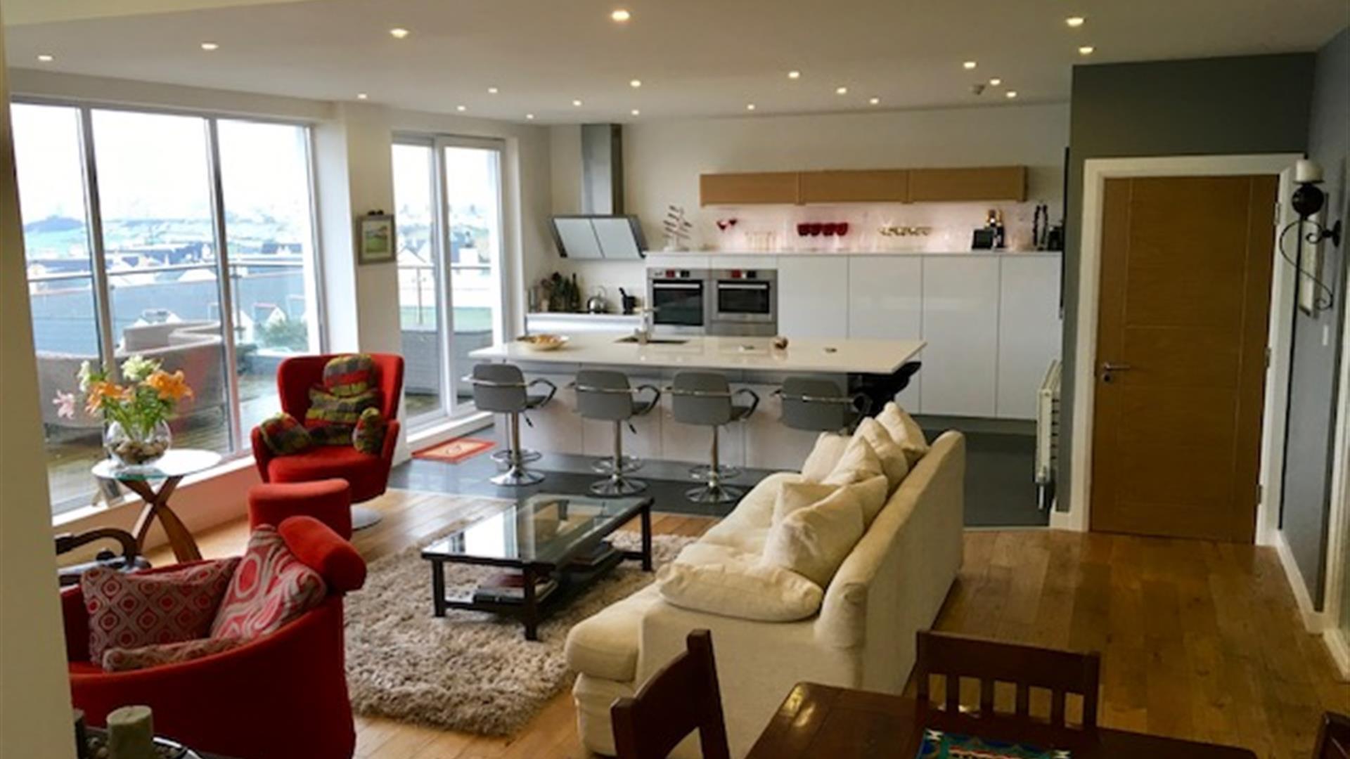 Hillrise is a modern boutique bed and breakfast which overlooks Portrush West Bay and Harbour. The property boasts a large balcony with magnificent views of the Atlantic Ocean, Portrush Harbour, the Giant’s Causeway and Royal Portrush Golf Club.Guests have a choice of breakfast dishes served in the bright dining room which overlooks a beautifully landscaped garden and the West Bay. Hillrise is nicely situated in a quiet location with ample private parking for guests.