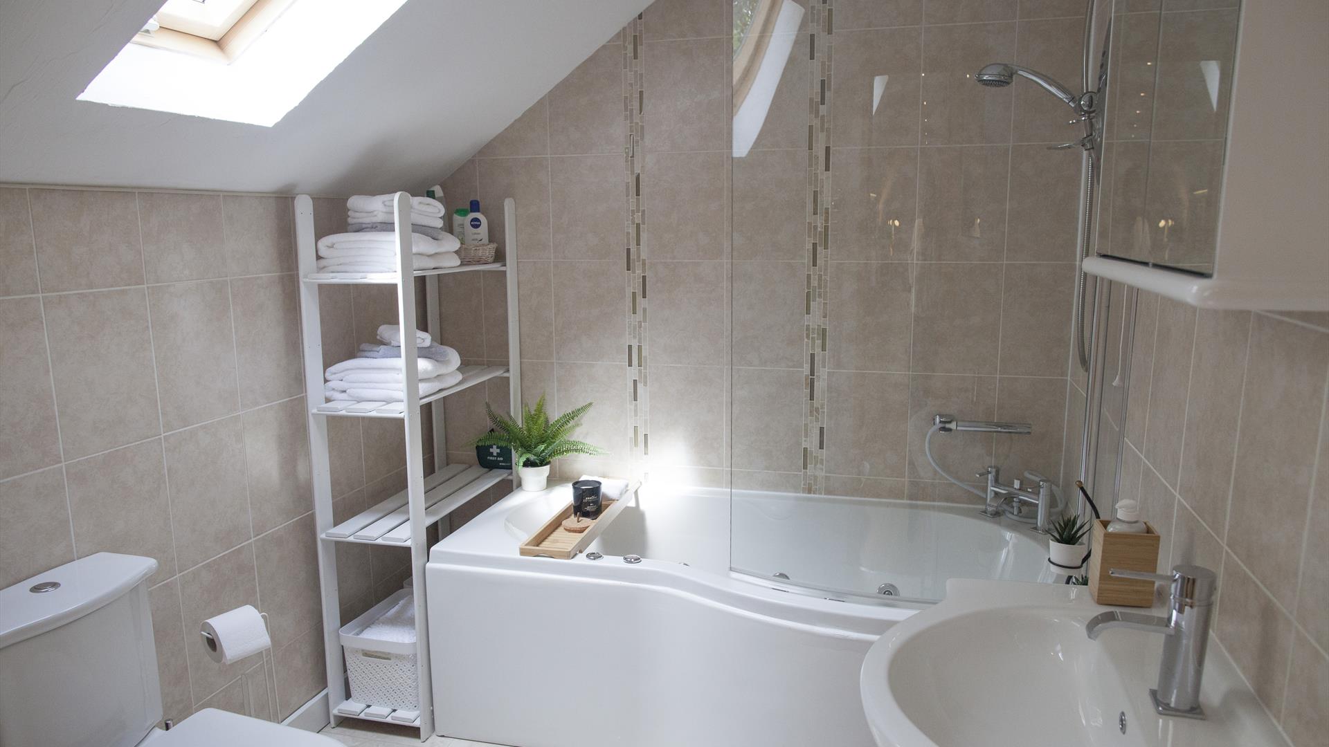 - Spa Bath / Jacuzzi - The bathroom includes a jacuzzi style bath tub.