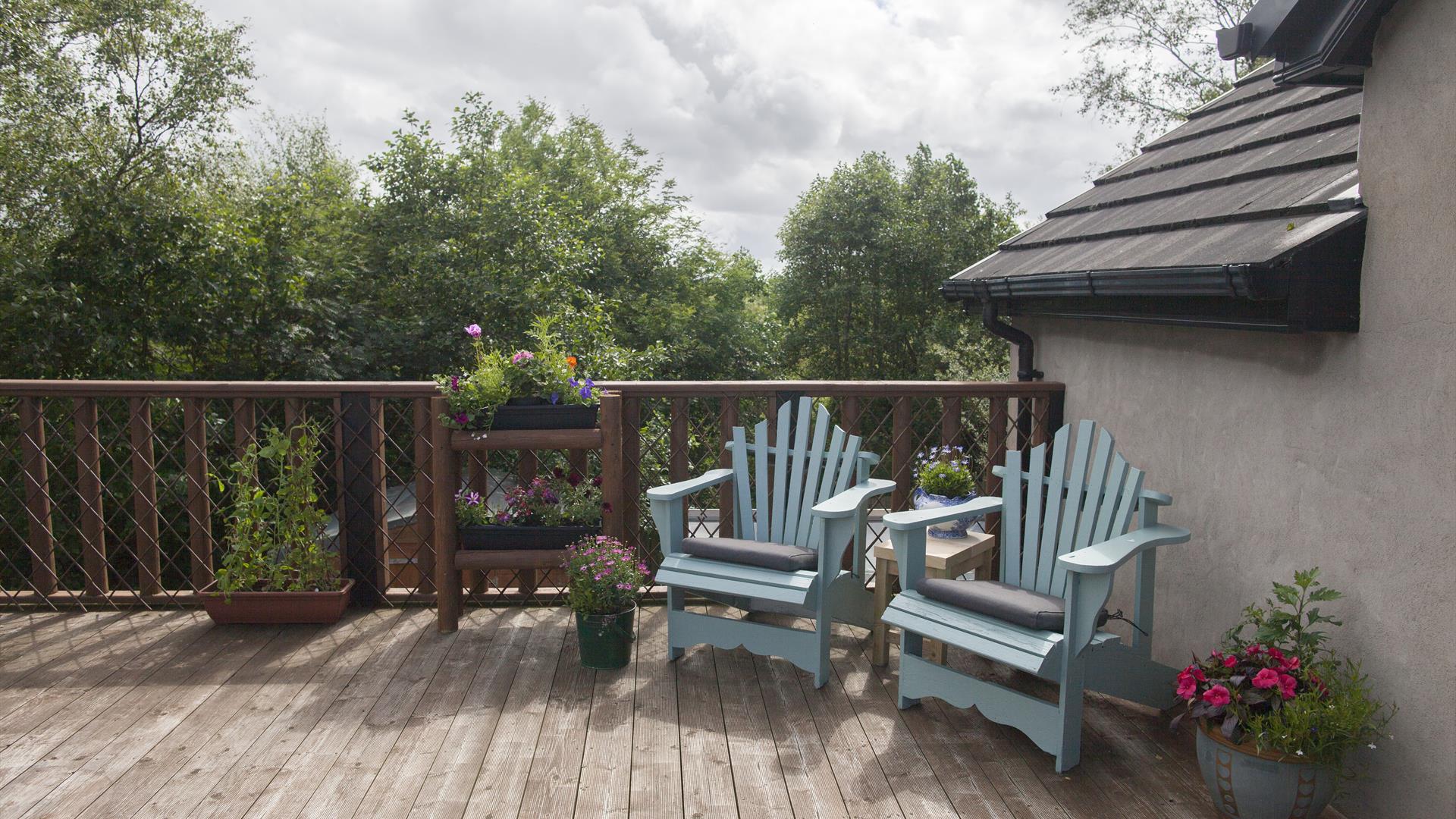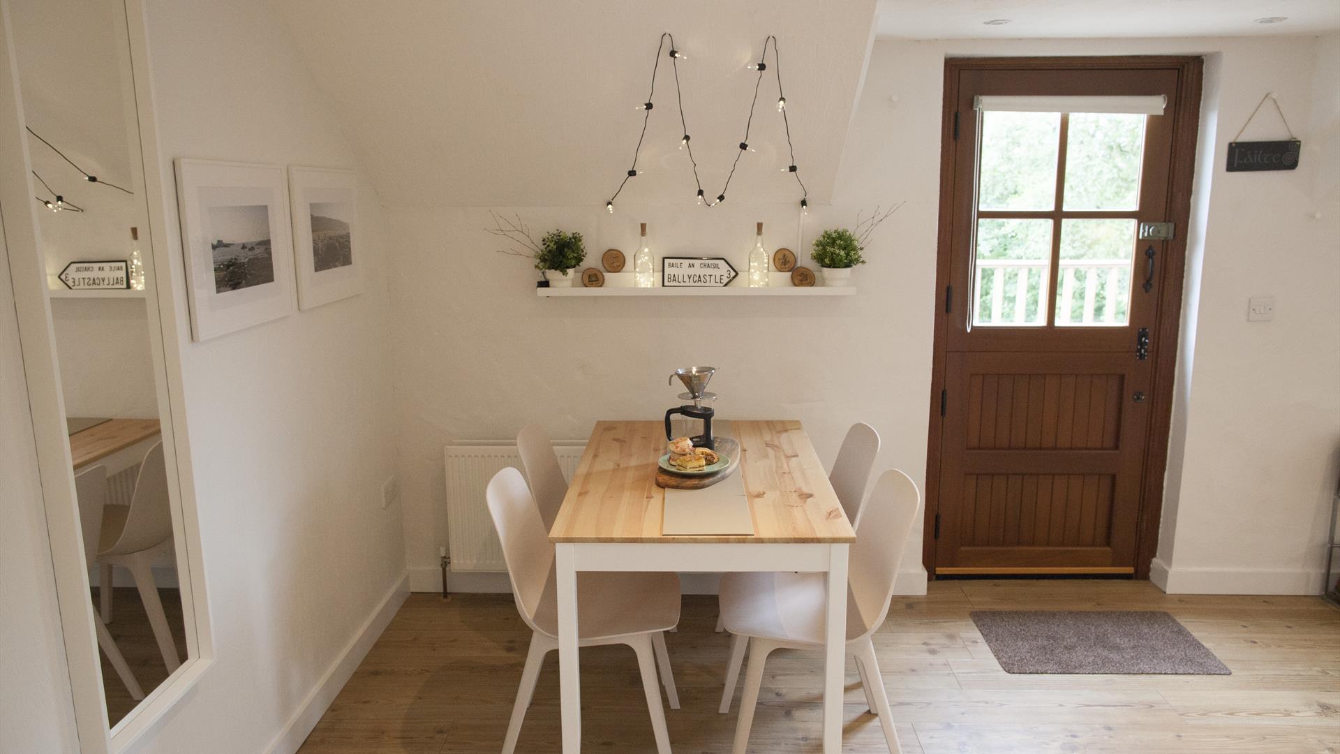 - Al fresco dining - Mollys Loft includes a first floor deck area with panoramic views of Knocklayde and Glentaisie, perfect for outdoor dining in summer. Patio dining furniture and adirondack chairs are provided.