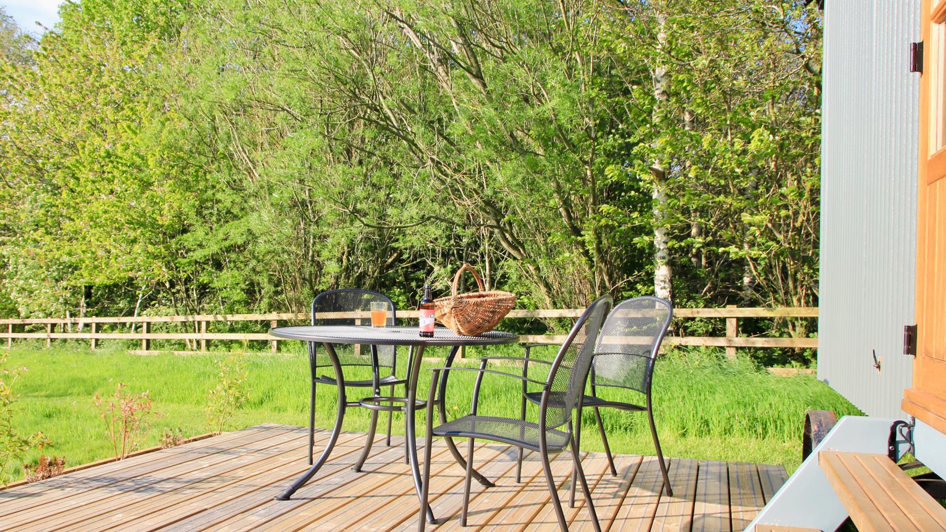 Each shepherd’s hut sits within its own generous, private space, accessed by a boardwalk and opening onto a generous deck. Inside, guests will find: