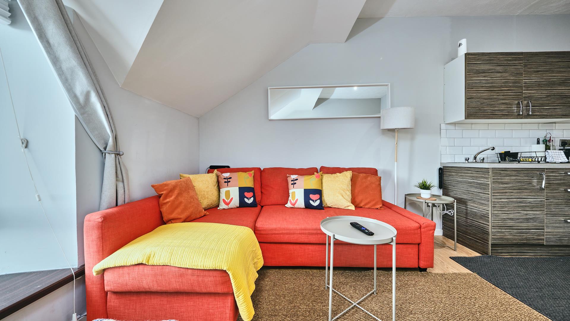 The apartment's bedroom is tastefully decorated and has a comfortable double bed, as well as ample storage space. The living area also has a sofa bed, which can sleep an additional person/children. The apartment has a modern bathroom with a shower, toilet, and sink, and we provide all the essentials, including towels and linen.