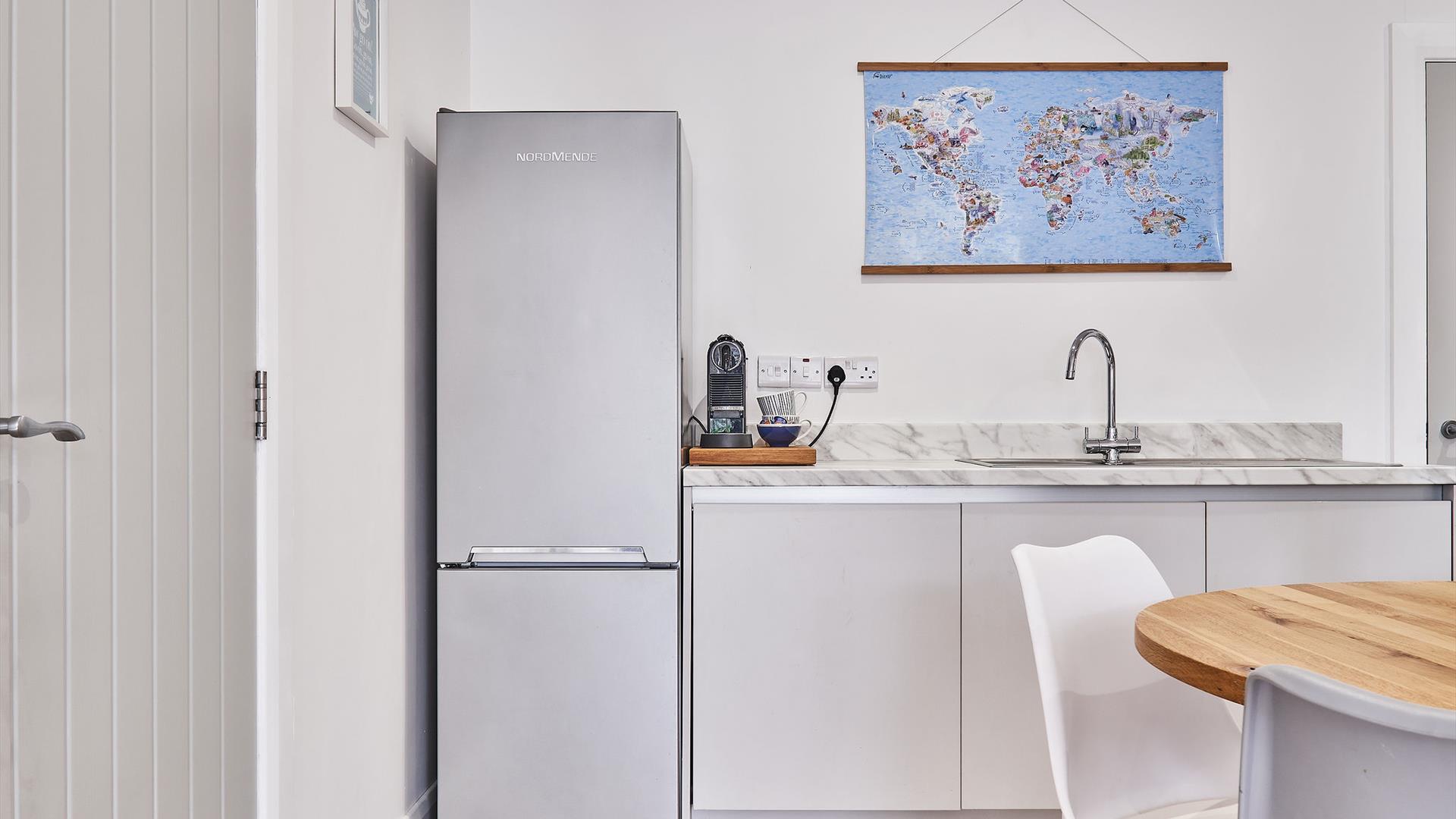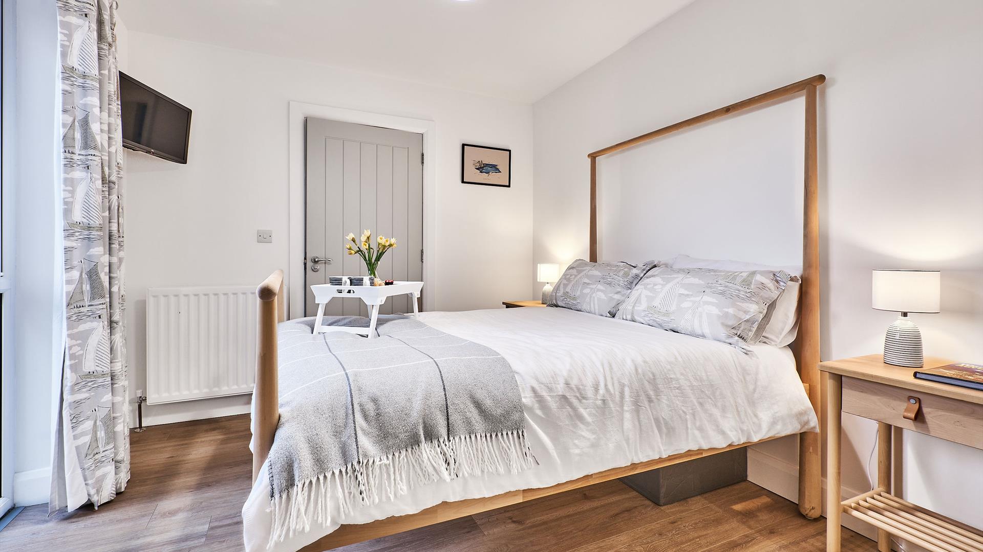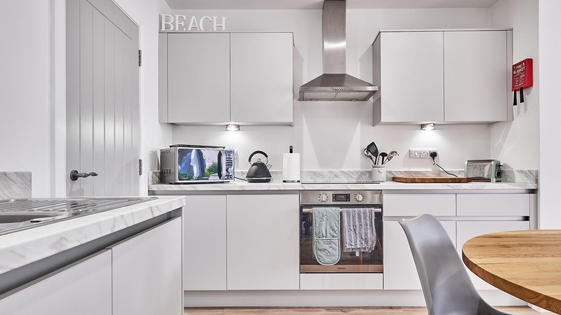 The living room is spacious and is open plan to the kitchen and dining area. The kitchen is set up with everything you will need for cooking and entertaining, which includes an induction hob, fan oven, a dishwasher, microwave and a Nespresso (original) coffee machine. There is seating for 4 people at the dining table.