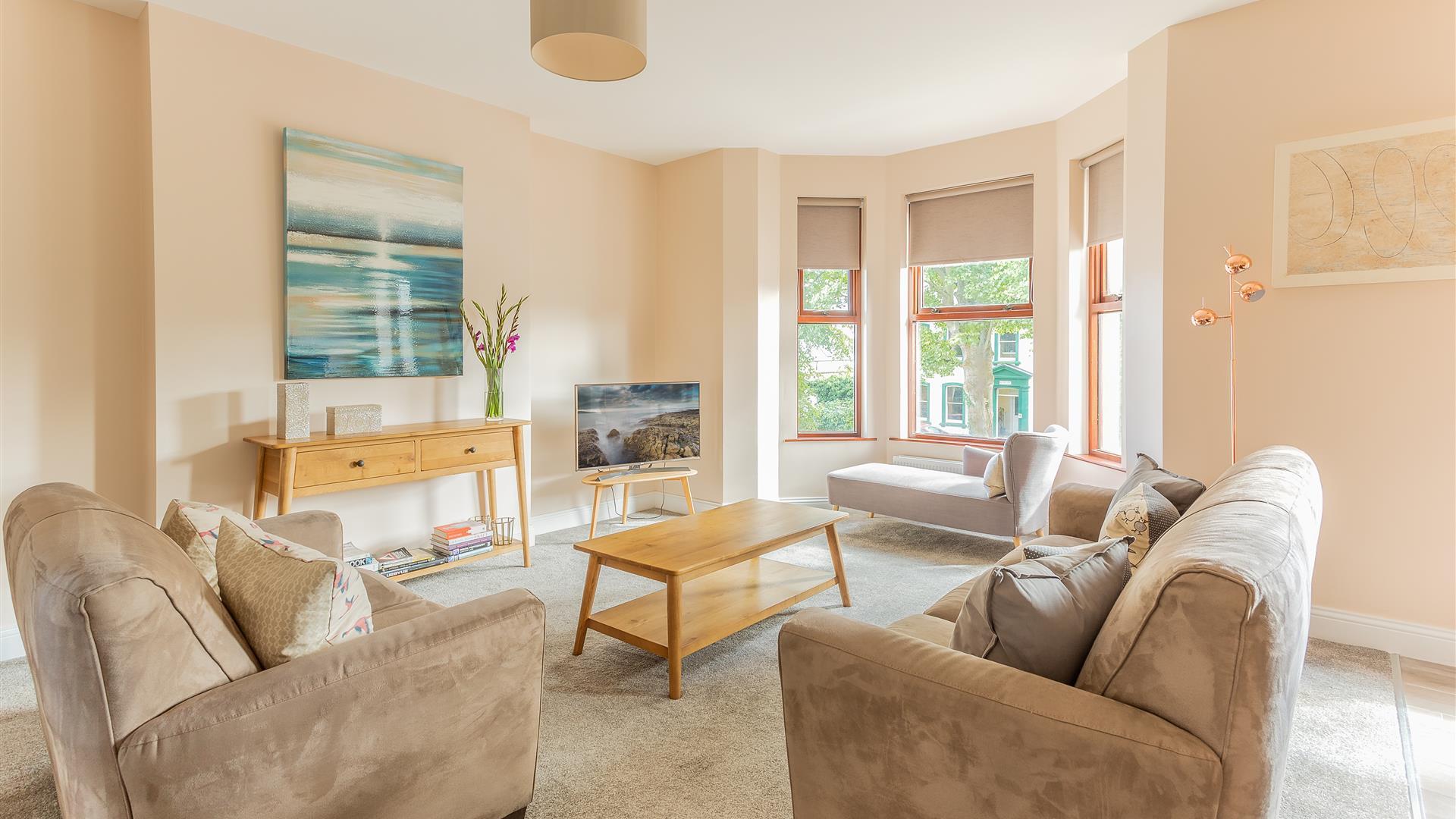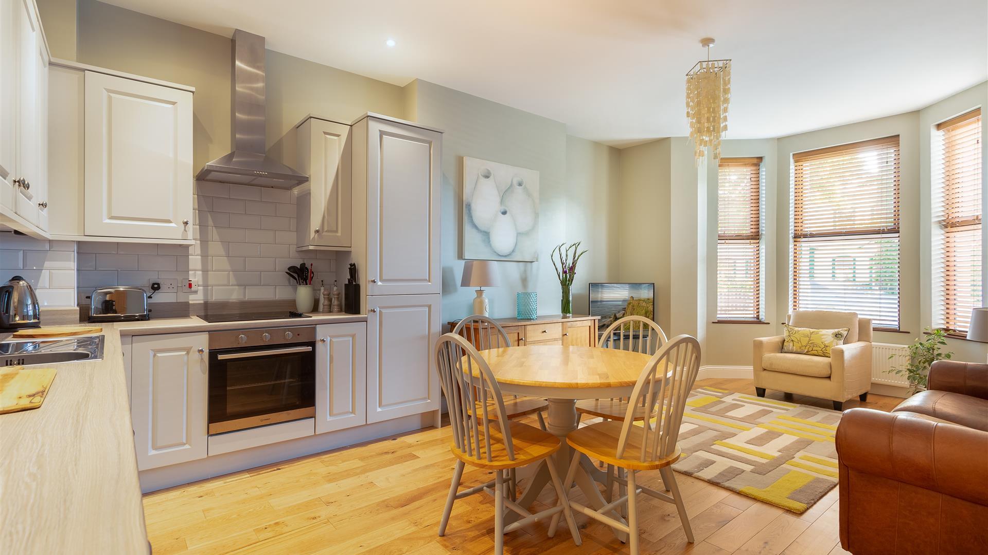 Beautifully finished and expertly renovated period town house spread out over three floor. It has been set up as two apartments, a two-bedroom ground floor and a four-bedroom duplex on the top two floors, the house can be taken in its entirety or as separate units.The ground floor apartment has a double which can be converted to a twin and a King, both share a full family bathroom. The kitchen, dining and living area can cater for up to four people.