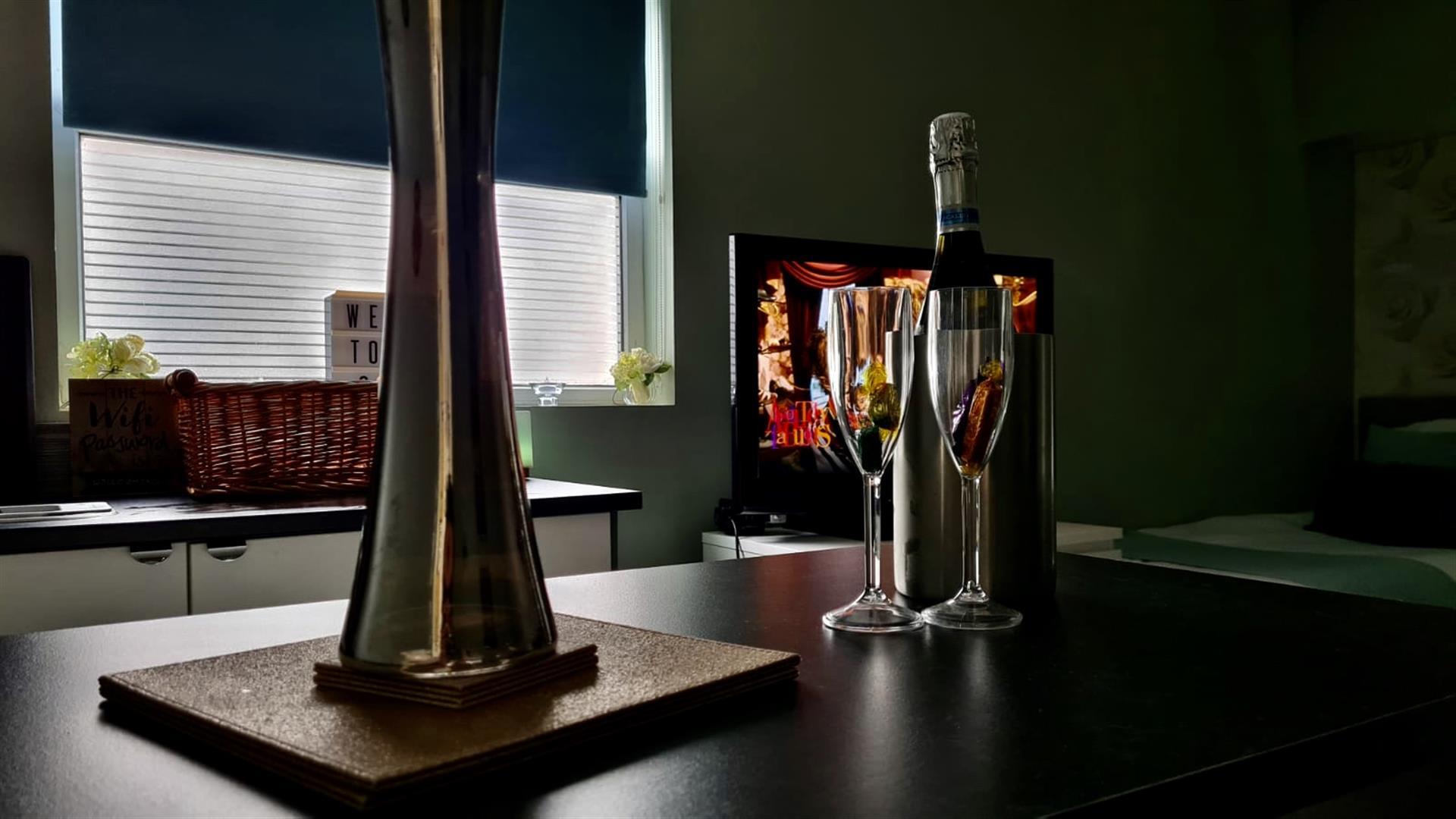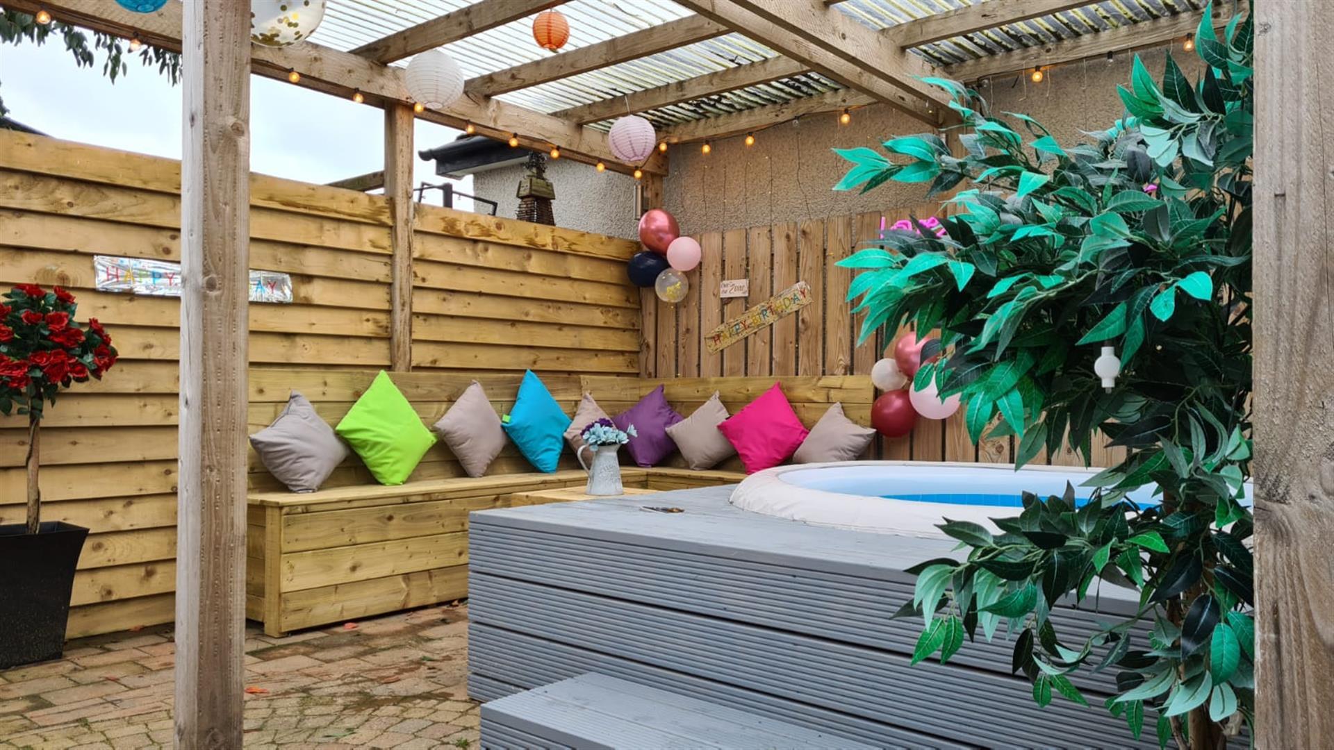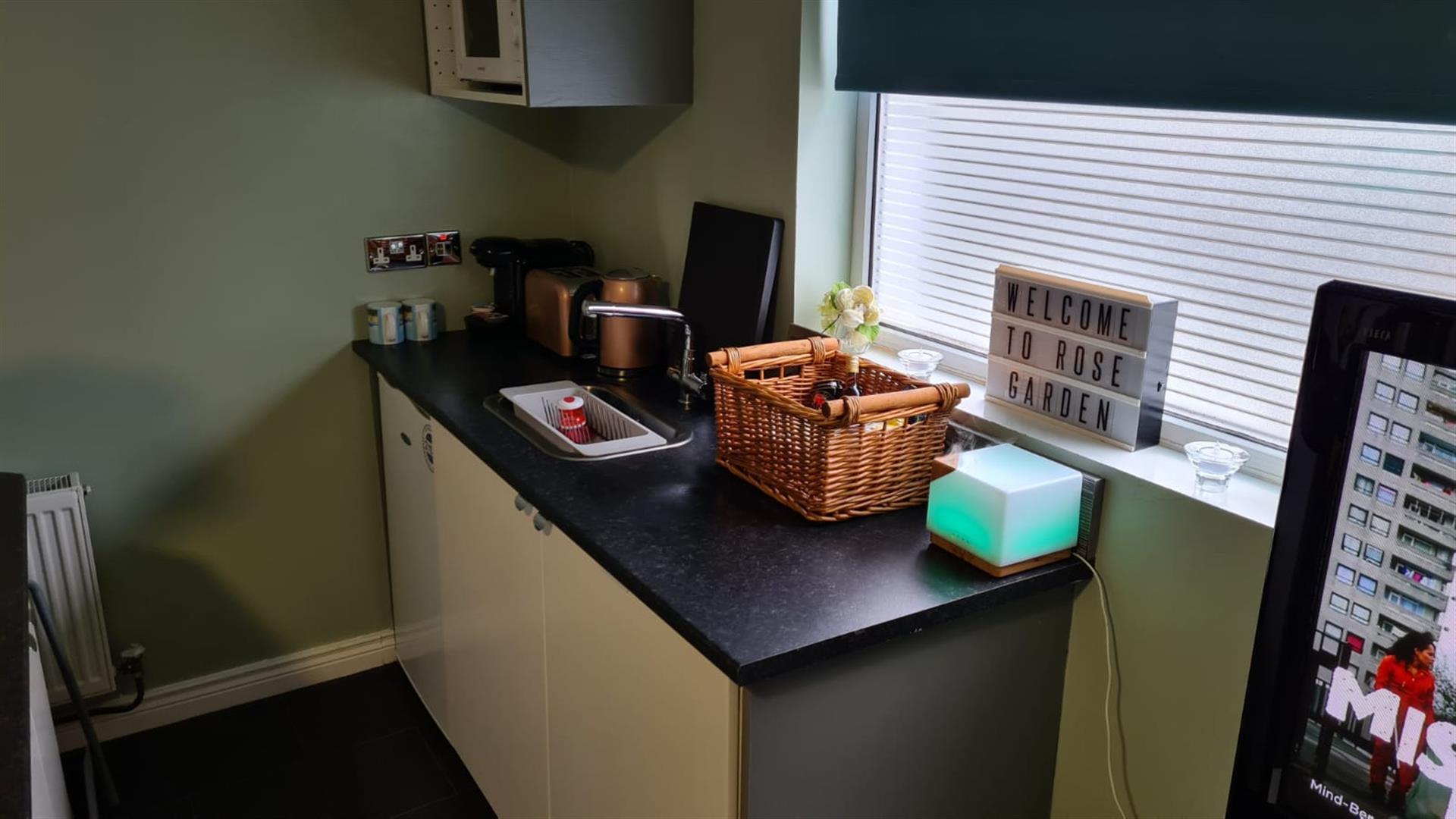 The Rose Garden Self Contained Studio Apartment features a hot tub and private garden area.The studio apartment has a double bed and a single bed, and a kitchenette featuring fridge, microwave, tassimo coffee machine, TV with full Sky package and free wifi.