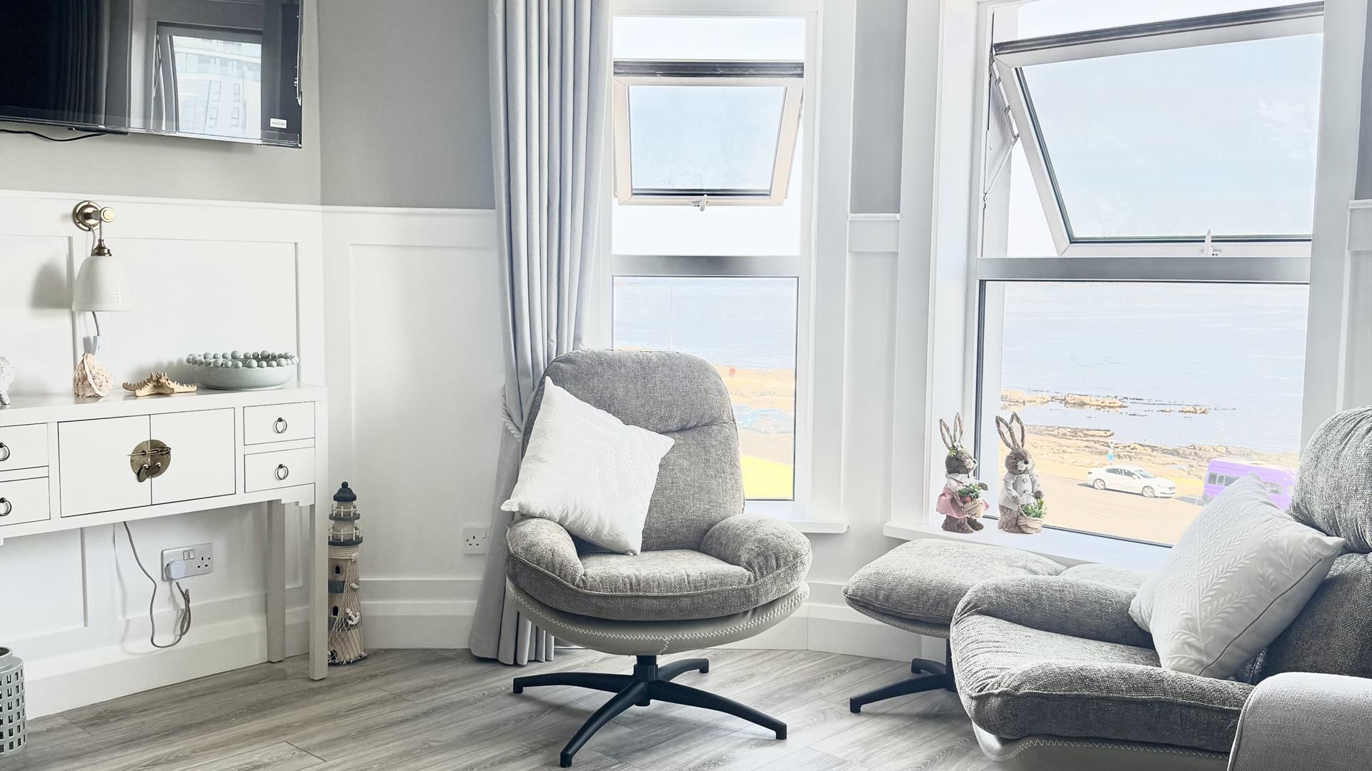 From the moment you enter Sea Glass, you’ll be drawn to the spectacular sea view through the large bay window—a perfect spot to enjoy your morning coffee or an evening meal accompanied by the soothing sound of the ocean.