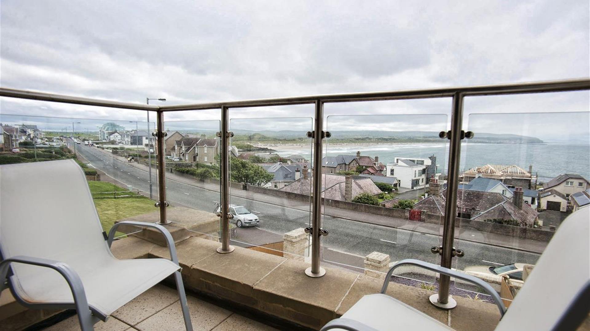 Beautifully decorated luxurious family home on Strand Road Portstewart. 4 bedroom, 1 Master suite with relaxation area and en-suite.Sleeps 9 over 2 King rooms, Family room 1 double & 1 single, Twin room with 2 single beds. Three seaward balconies, Aga,two twin Jacuzzi baths.