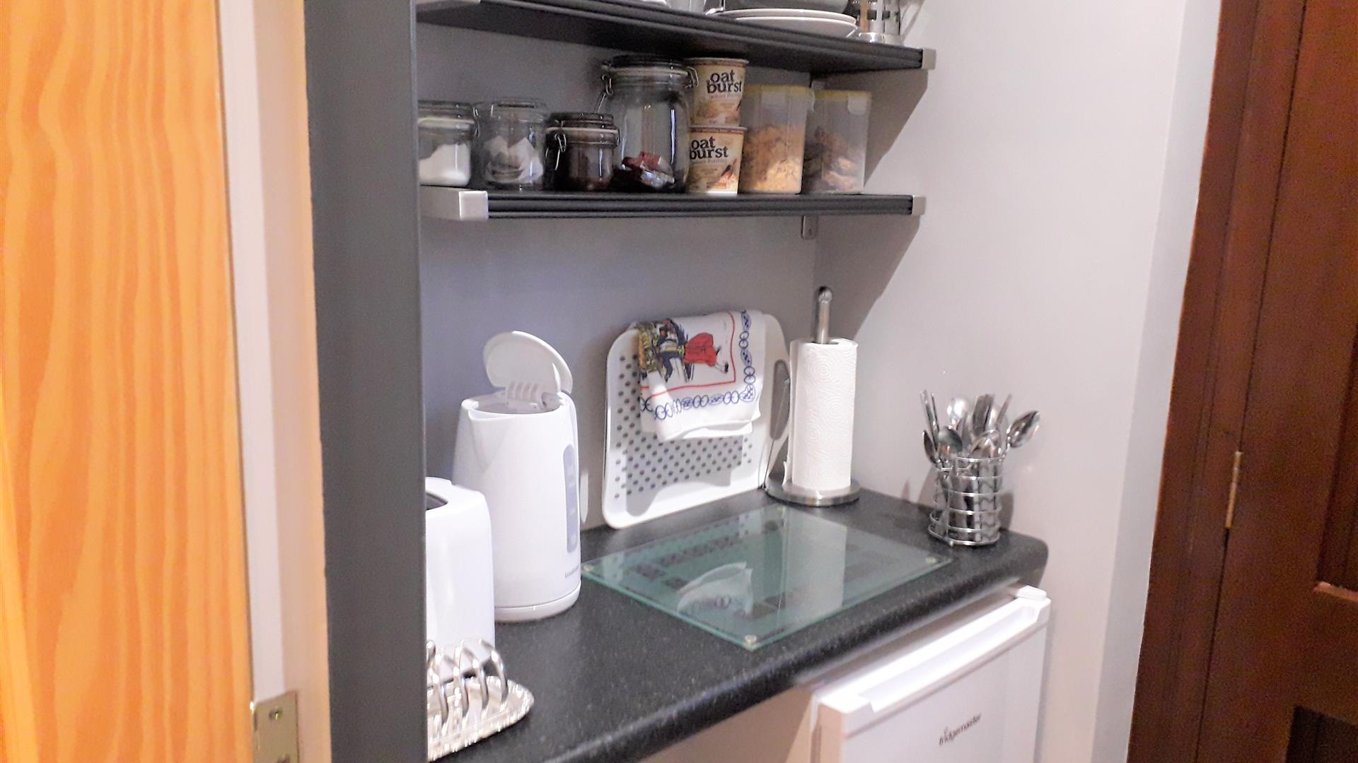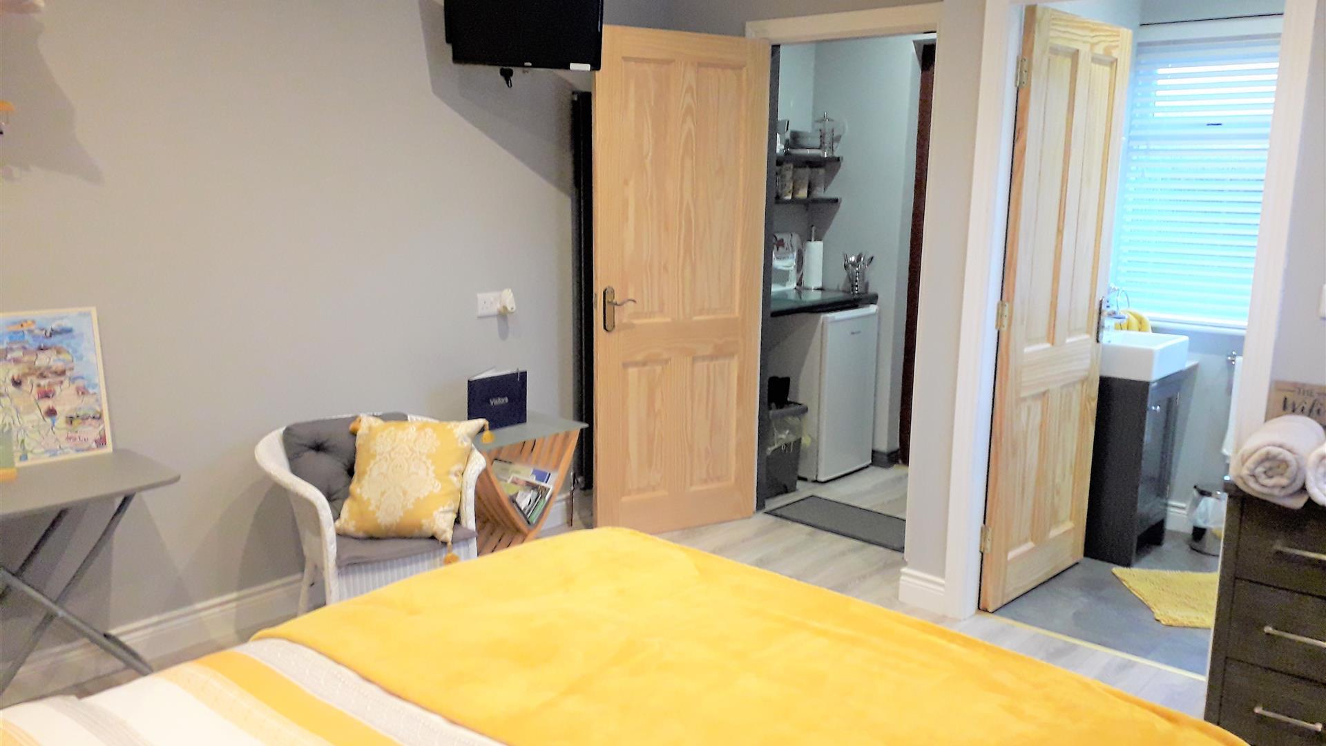 This cosy and modern annex is connected to the back of the main dwelling house and the owners are never too far away for all your needs. It is situated 2.7 miles from Northern Ireland's first UNESCO Heritage Site, the Giant's Causeway and a 5 minute walk to the world famous Old Bushmills Distillery. This unique living space is centrally located to all the tourist attractions of The Causeway Coast and is a comfortable and convenient base to explore your surroundings.The Annex is a new project which has been lovingly transformed from an office to a bright, roomy, contemporary living space. Tastefully decorated to a very high standard The Annex has Wi-Fi connection and a television in the room with adjoining en suite bathroom. There is a small kitchenette area with a fridge, kettle and toaster and continental breakfast of bread, butter, jam, juice, tea, coffee, fruit and cereals is provided. Guests are welcome to bring in their own food and drinks. There are a selection of great cafes for a cooked breakfast or lunch as well as a couple of supermarkets within walking distance. There are many great restaurants in Bushmills and the surrounding coast, and the proprietors are happy to help guests with any information they may need.