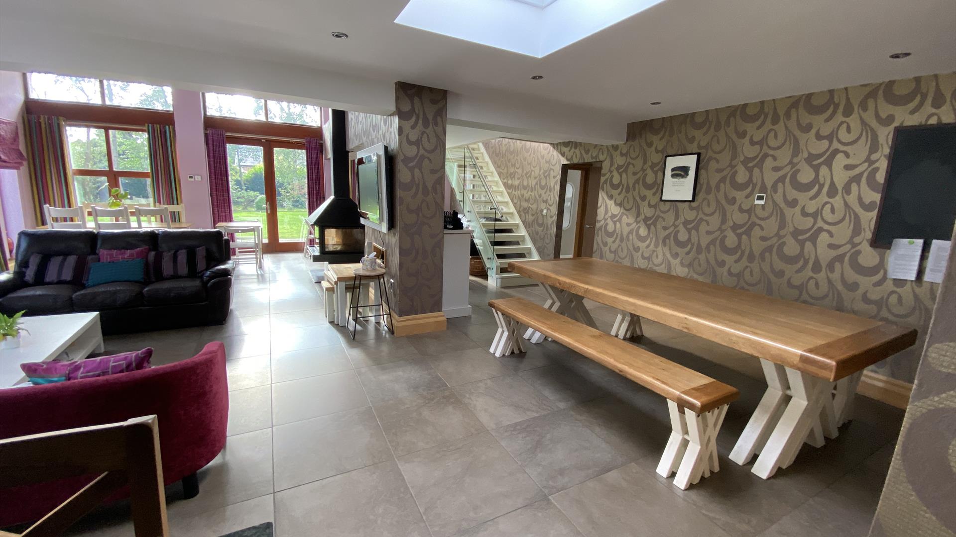 Nestled in an area of outstanding natural beauty, our home is an ideal base for families to holiday together. With beds for 20 (+extra) and a large open plan kitchen/living area, visitors can enjoy the comfort of our home and facilities. Extensive gardens have a BBQ, fire pit, picnic area, pizza oven and fire-pit, plus plenty of grassy areas. We have a pool and table tennis room and a large activity hall with basketball nets and badminton. Roe Valley Resort and Country Park, Benone and Castlerock beaches and Binevenagh Mountain and are on our doorstep. Limavady itself is only 5 minutes drive and is a thriving market town with unique boutique shops and family run businesses. It is perfectly situated to explore both The North Coast attractions including the Giant's Causeway, as well as Derry and Donegal in the other direction. All are within an hour drive from our house.