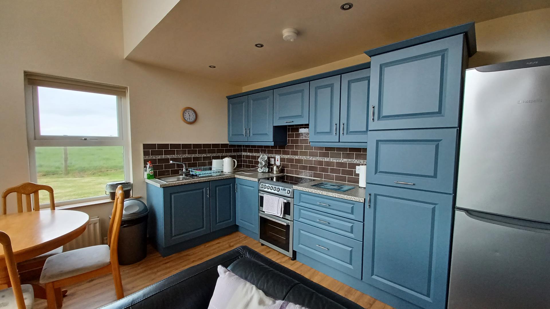 There are sandy beaches (East Strand, West Strand and the White Rocks), and of course The Giant's Causeway. It has an open plan living room, dining area and fully equipped kitchen, leading out to a patio and garden area. There is a log burner in the living area, though the chalet has full oil central heating. It has two double bedrooms, one of which is a balcony bedroom with en suite; the other bedroom is downstairs next to a shower/wet room. Sorry, no pets or smoking in house please.