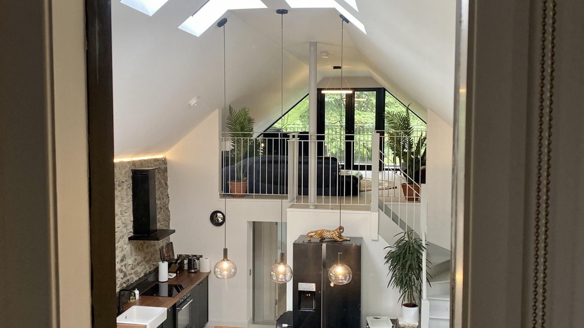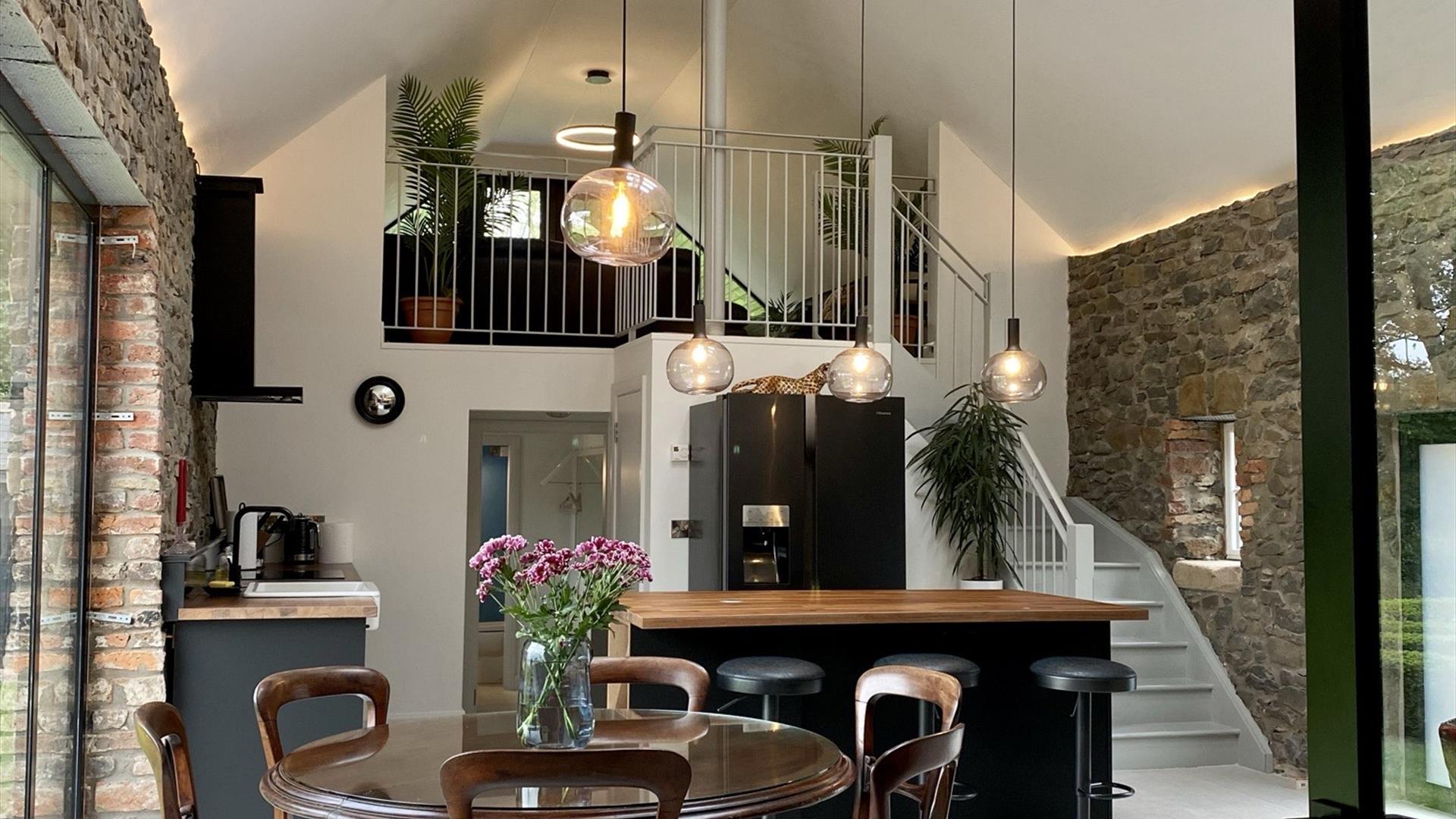 Charmingly furnished throughout, this property balances spaciousness with a cozy intimacy that makes returning from an adventure a pleasure. The heart of the Barn and perhaps its crowning glory, is its spectacular open plan area, with its 6 meter high ceiling it boasts a sitting area with a fireplace, a fully furnished kitchen, a dining area and a lounge leading out to the balcony with garden views.
