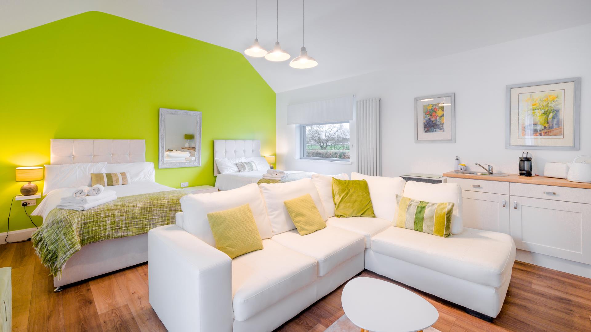 Self Catering Studios: Family and pet friendly, with private patios, two double beds, kitchenettes, and ensuite showers. Continental breakfast optional (£10 surcharge).