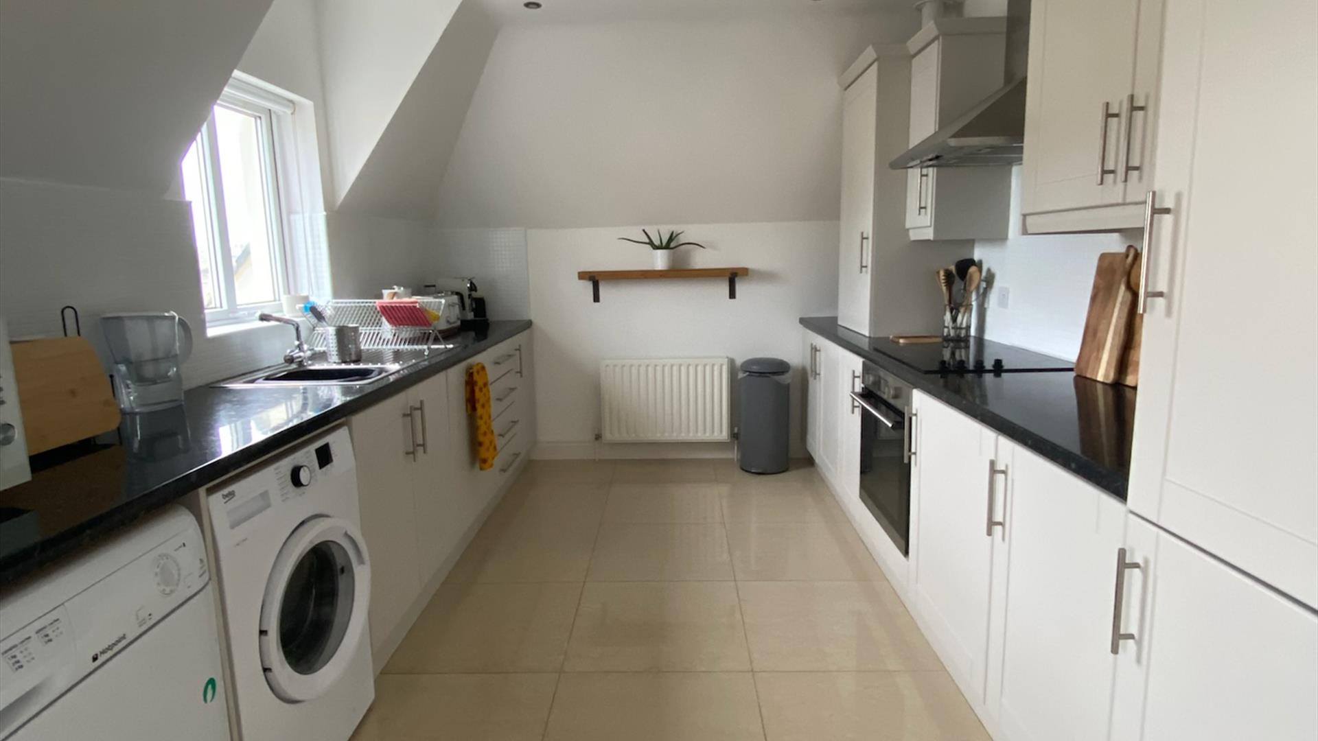 Easy parking, fully equipped kitchen & a stunning living area with books & games. This top floor flat has 1 king side bedroom, 1 double en-suite bedroom & 1 double bedroom, with super fast WiFi.