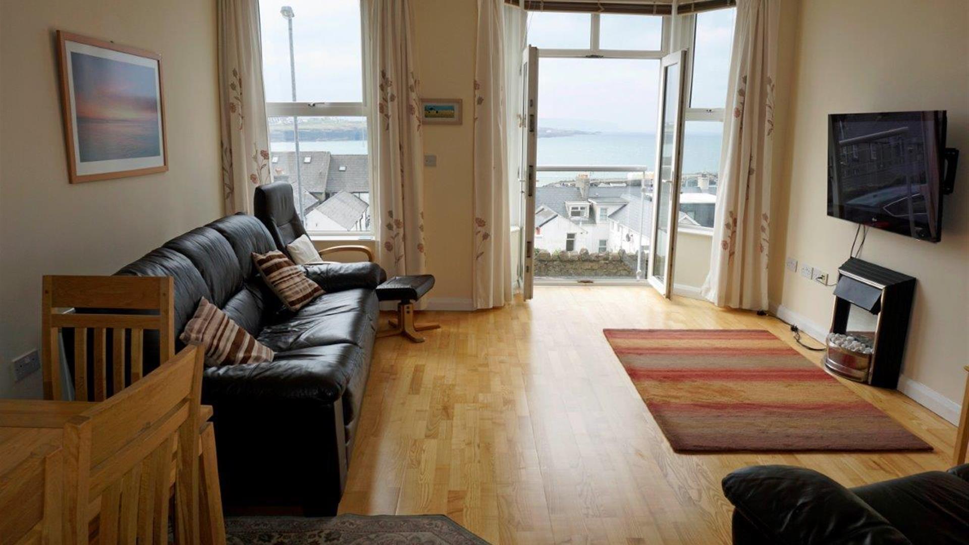 Two bedroom modern first floor apartment with stunning sea and harbour views located near central Portrush. Spacious and bright. Very close to two beautiful sandy beaches and within walking distance to Whiterocks beach. Close to many attractions: Giants Causeway, Royal Portrush Golf Course, Dunluce Castle and locations for filming the Game of Thrones.Ideal for families. Super king bed and two single beds. Travel cot available on request. Lift. Disabled friendly. Acoustic glazing in bedrooms.