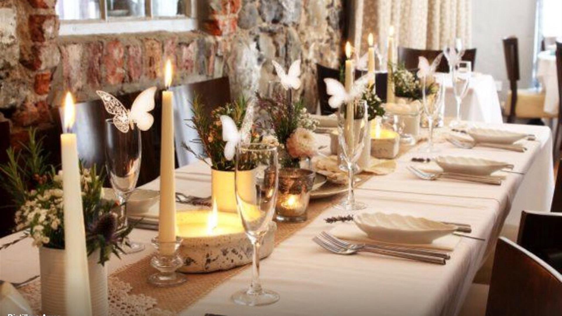 The Distillers Arms was originally the home to the Distillery owners, spending some years as a pub before being converted into the restaurant which still retains many of the original features. The Restaurant 'Tartine' comfortably seats 85 guests in 3 beautifully appointed, interconnecting areas each with a contemporary selection of local artists original paintings and prints. The lighting is low, the atmosphere romantic and the service attentive and friendly. Committed to selecting ingredients that are both local and seasonal and to the creation of dishes that are refined, yet simple and full of flavour.Our cooking style can be described as, Modern Brasserie.